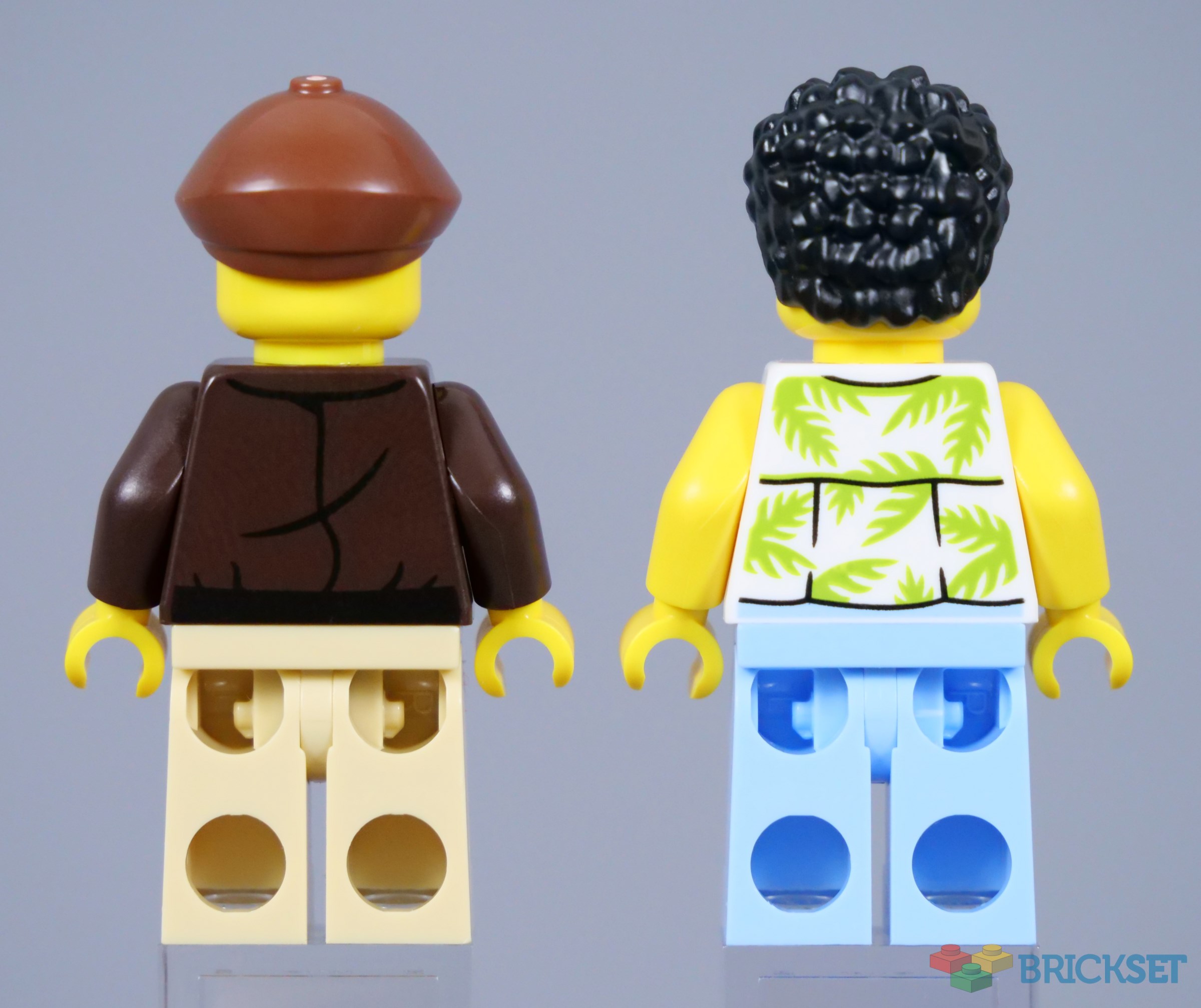 A driver and a passenger are included and the former is dressed quite stereotypically for a taxi driver, wearing a flat cap and a Hawaiian shirt under a dark brown jacket. This torso appears in several sets, but it looks superb. The passenger's torso also includes a plant-based pattern and this is a new element, which is always nice.