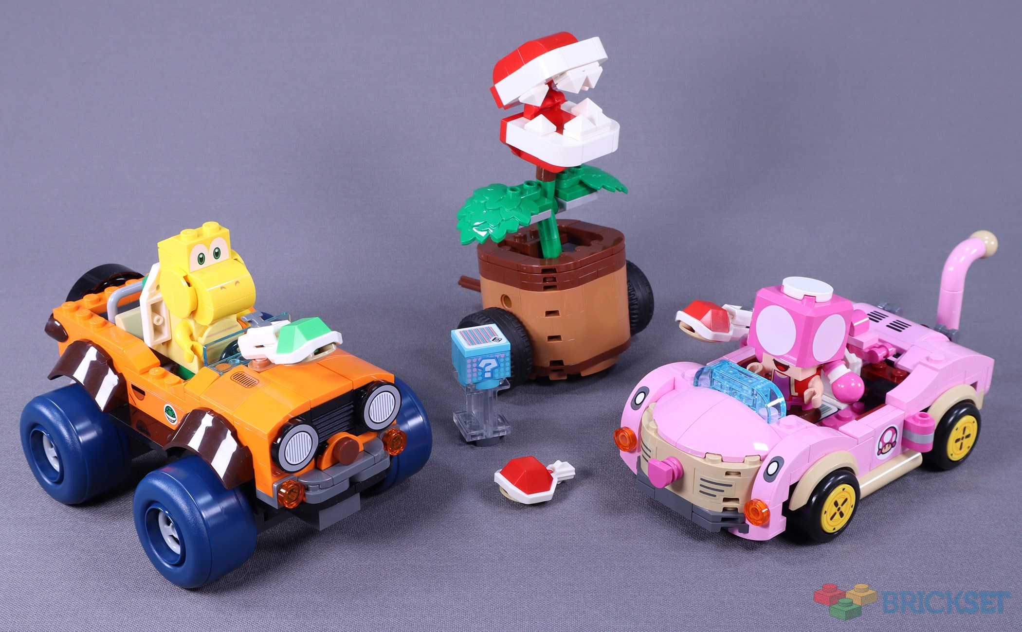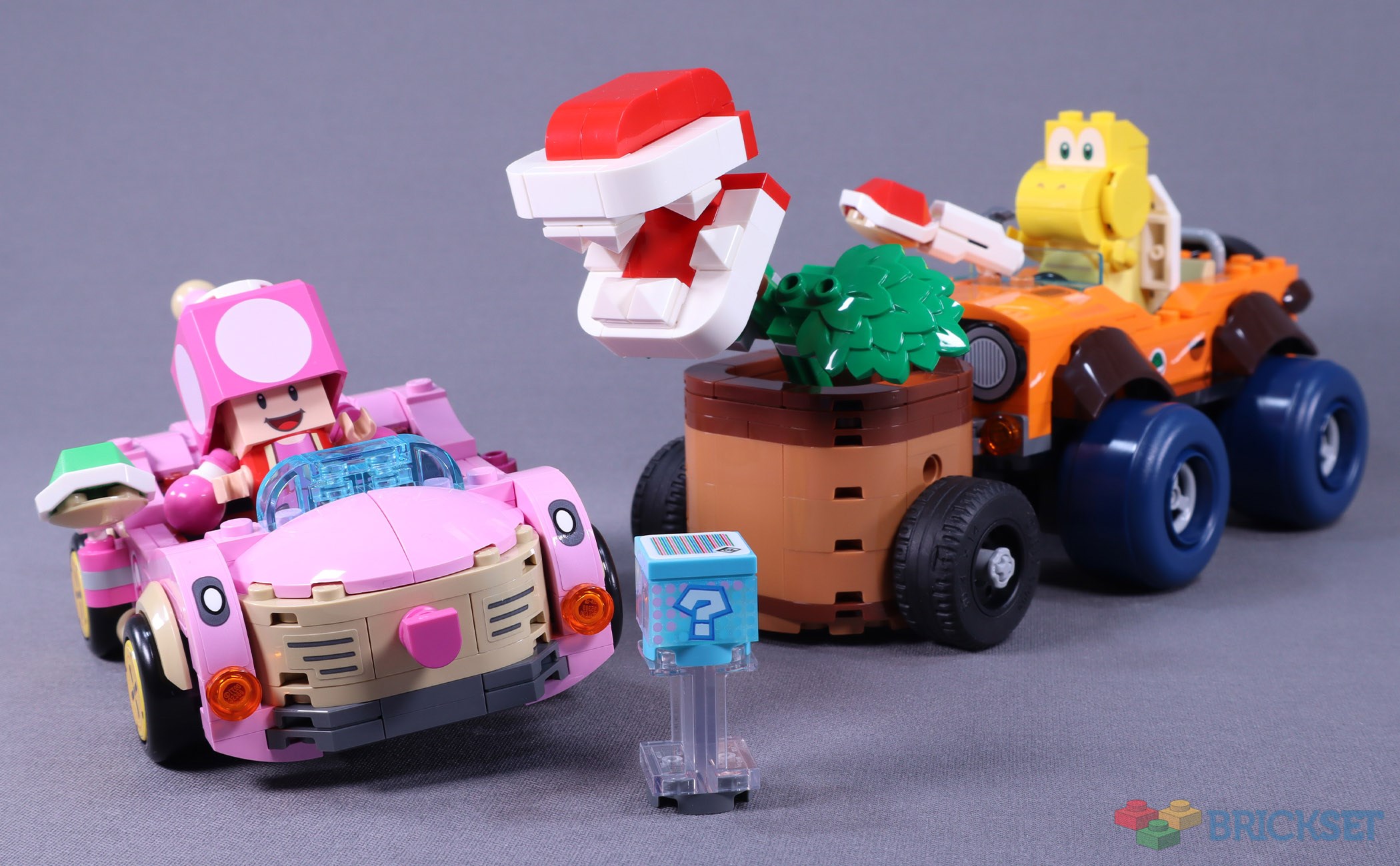 Posted by SetToBuild,The last double pack of karts to hit the road this wave are popping with colour and sprouting with life. One of the earliest enemies seen in 1985’s Super Mario Bros. stars as the first large, attachable power-up to appear in the theme. When used in Mario Kart 8, the Piranha Plant is a time-limited item that lunges towards opponents, items, and obstacles while giving a speed boost with every bite. While the attachment coupling only appears on these two karts, it’s an entertaining play feature that works well in LEGO.
