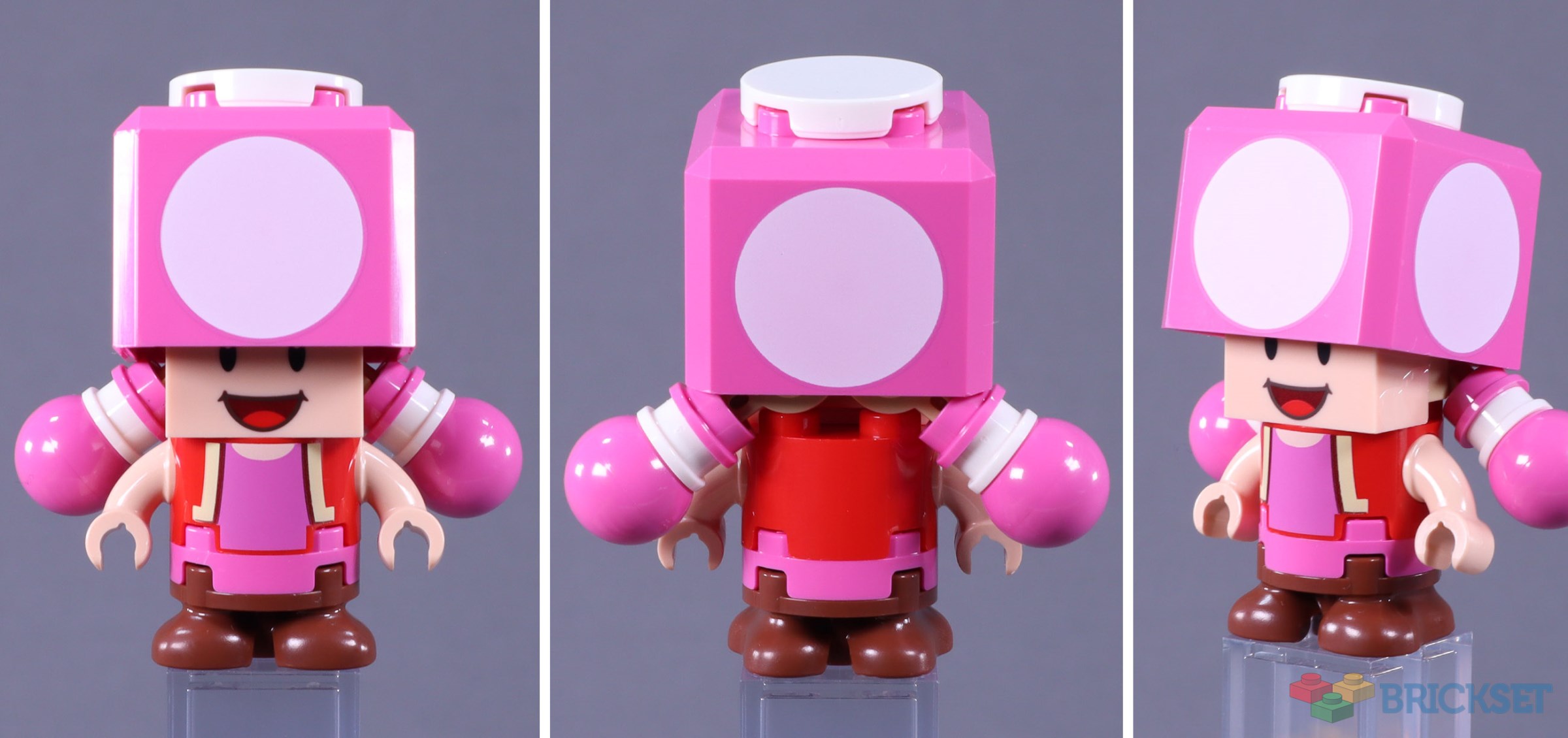 The Toadette minifigure was last seen in 2022’s 71408 Peach's Castle. While she does normally don this outfit in the games, a racing uniform (maybe similar to the Toadette Mii uniform) would have been a fun way to differentiate the figures. The newest title, Mario Kart World, has introduced outfit changes for characters.