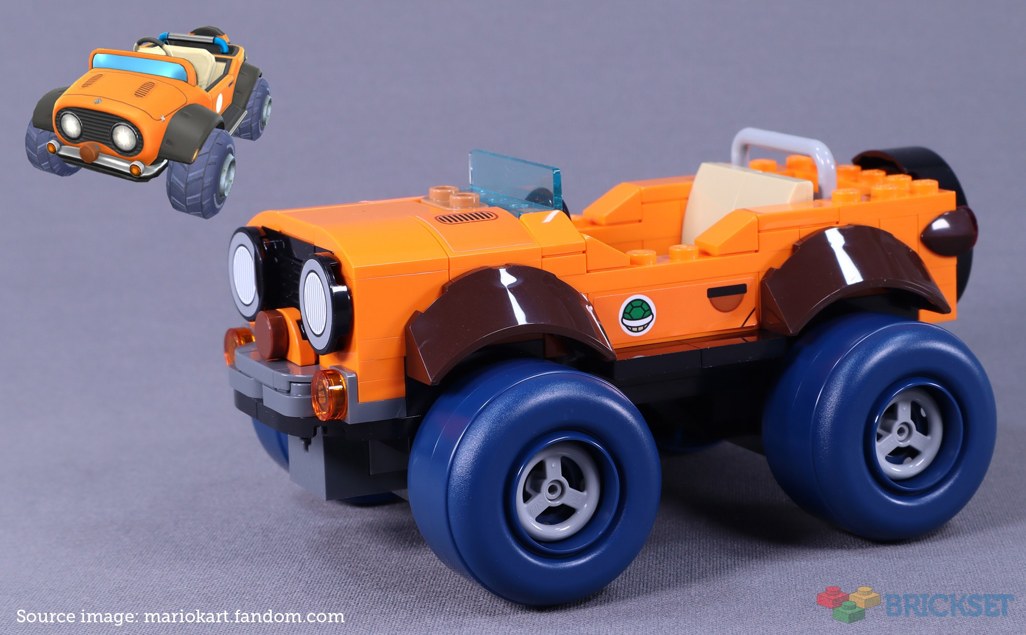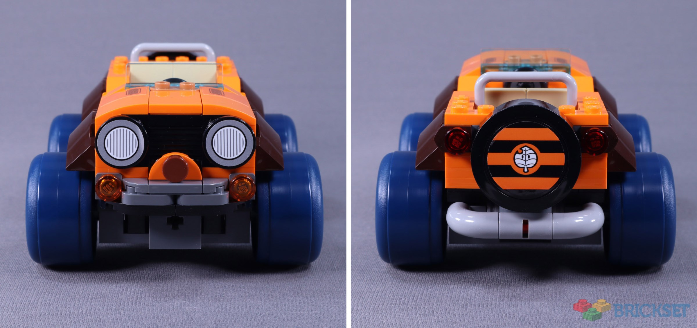 The spare tyre cover retains the Super Leaf emblem used in the Super Mario games to indicate various power-ups, the most relevant being the Tanooki suit. The new wheel moulds, also in 72039 Bowser's Castle, look great paired with this orange vehicle. However, as I said in the 72039 review, their smoothness still looks odd on what is supposed to be a large off-road vehicle. All the wheels in the Mario Kart theme feature this unusual texture choice.