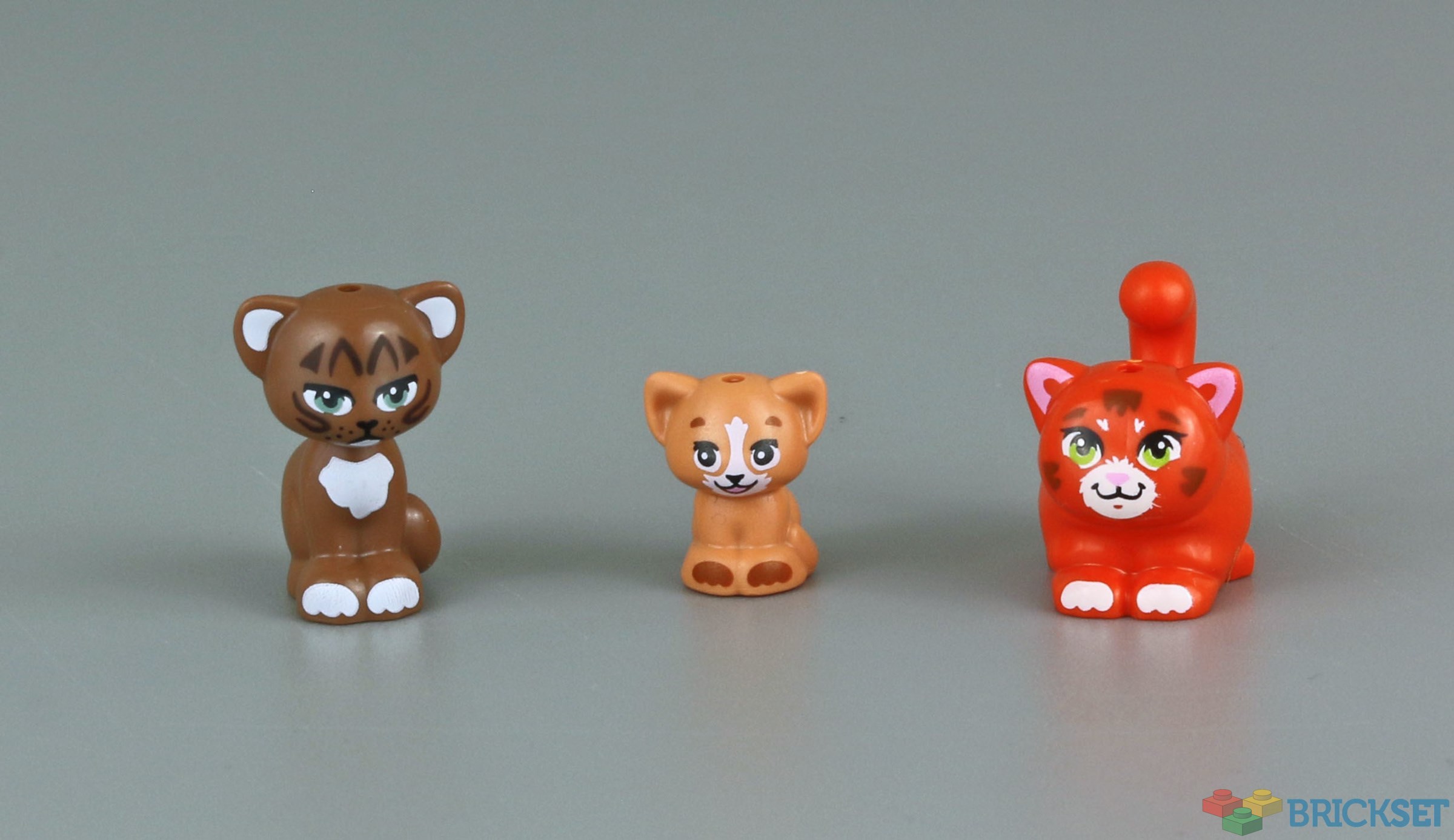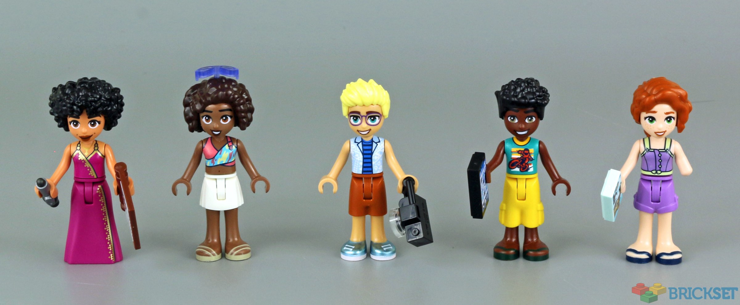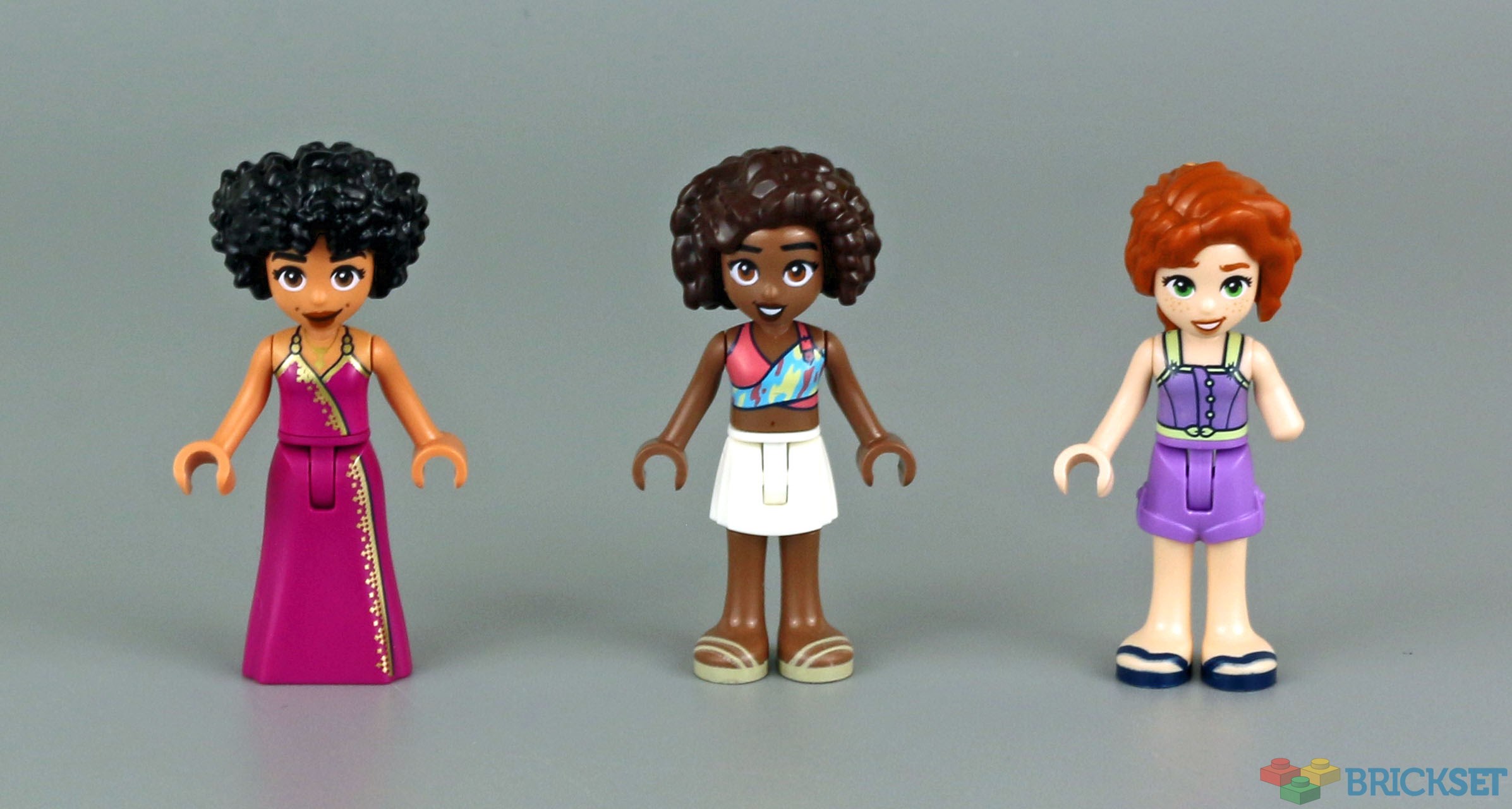 There are five minidolls in the set. In a bit of a departure, four of the five minidolls are members of the core Friends crew (though I believe this is the only Olly appearance in this wave). All the minidolls come equipped with an accessory, though Aliya has to make do with only a pair of sunglasses. The printed tile that Autumn is carrying looks to be the same as the invitation to 42666 Cat Birthday Party, so perhaps Churro has taken his party to the next level?