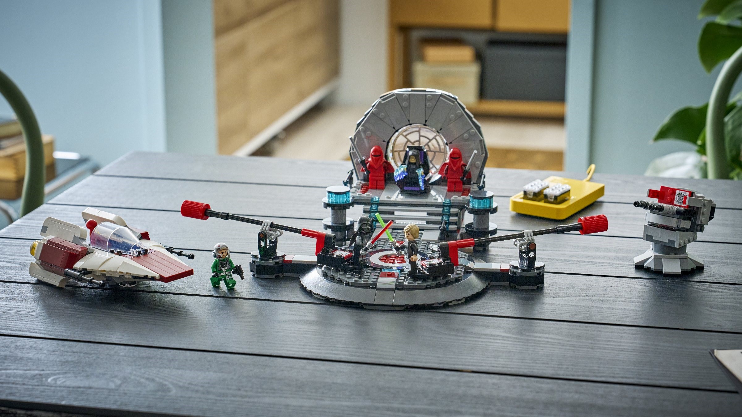 Fans will be able to re-enact and re-imagine one of the most memorable moments from the original Star Wars trilogy, the final lightsaber duel between Luke Skywalker and Darth Vader at the end of Star Wars: Return of the JediÔ. The 962-piece set comes with three SMART Minifigures featuring the characters Darth Vader, Emperor Palpatine and Luke Skywalker (Jedi).