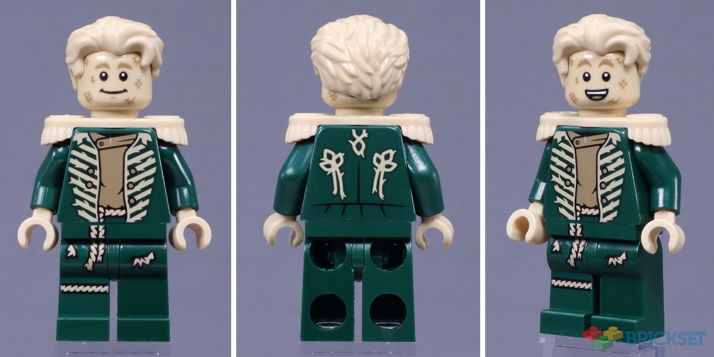 This isn’t actually the first minifigure of Elphaba. The 1939 Wizard of Oz movie is widely credited with the invention of the green-skinned witch trope, and the Wicked Witch character, who we now know as Elphaba, has appeared in both Batman and Dimensions sets before now. Her skin has now been updated from lime to regular green; this was a first for the minidoll, but not a minifigure, as it was used as far back as 2014 for the Martian Manhunter. Today, we see Elphaba wearing her pinstriped floor-length jacket fully buttoned to cover the purple and black dress beneath, an outfit mirrored in this minidoll from 75687 Elphaba's Retreat.