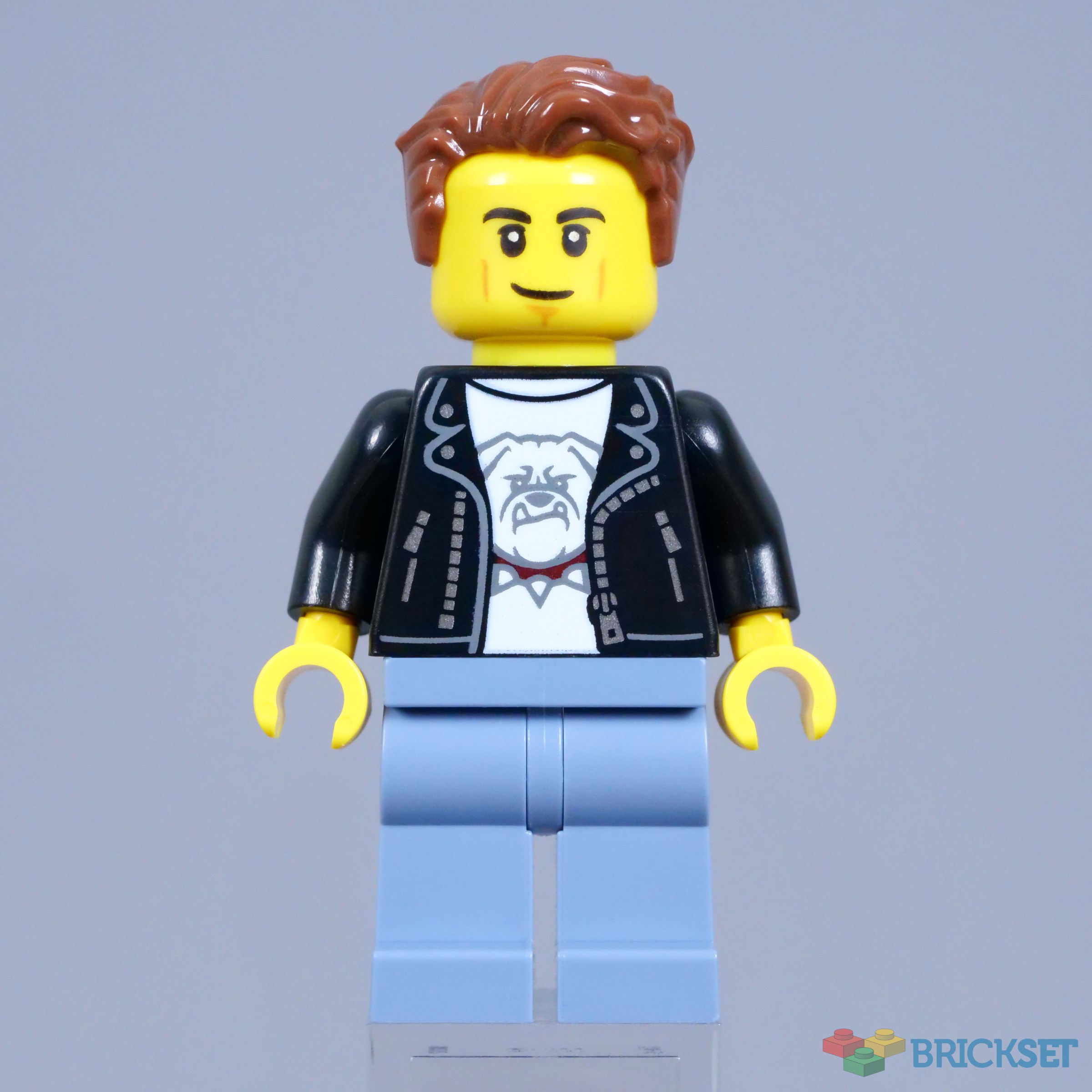 The driver uses an exclusive torso, sporting a leather jacket and a shirt underneath with a dog motif on the front. This design resembles the bulldog available in 60417 Police Speedboat and Crooks' Hideout from a couple of years ago, though with a spikier collar. I think this attire works for the hot rod driver.