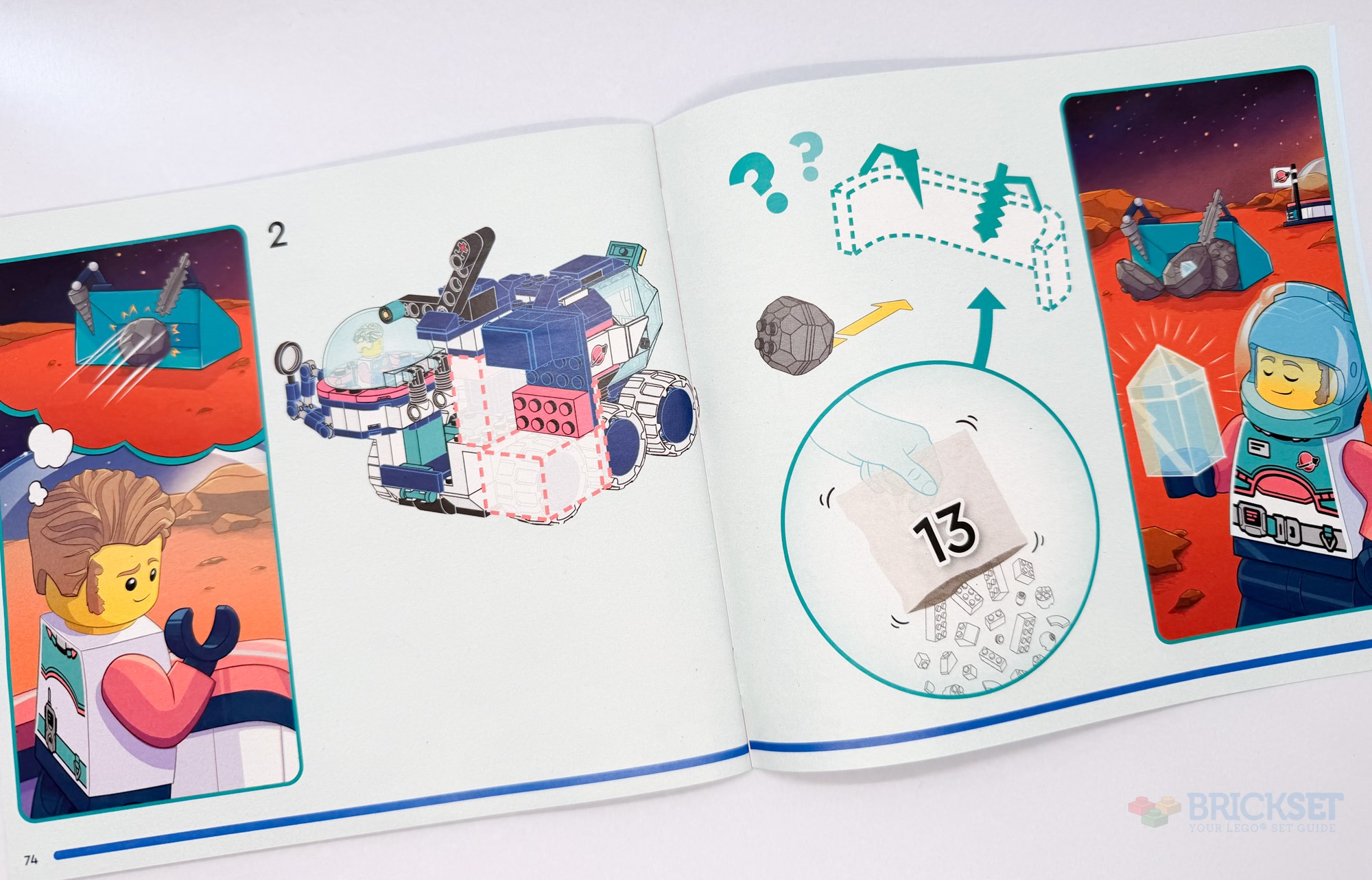 With that solved, the only question is where to gather all these rocks for analysis. Bag 13 provides the parts necessary for the invent phase, where we are encouraged to build a collection area.