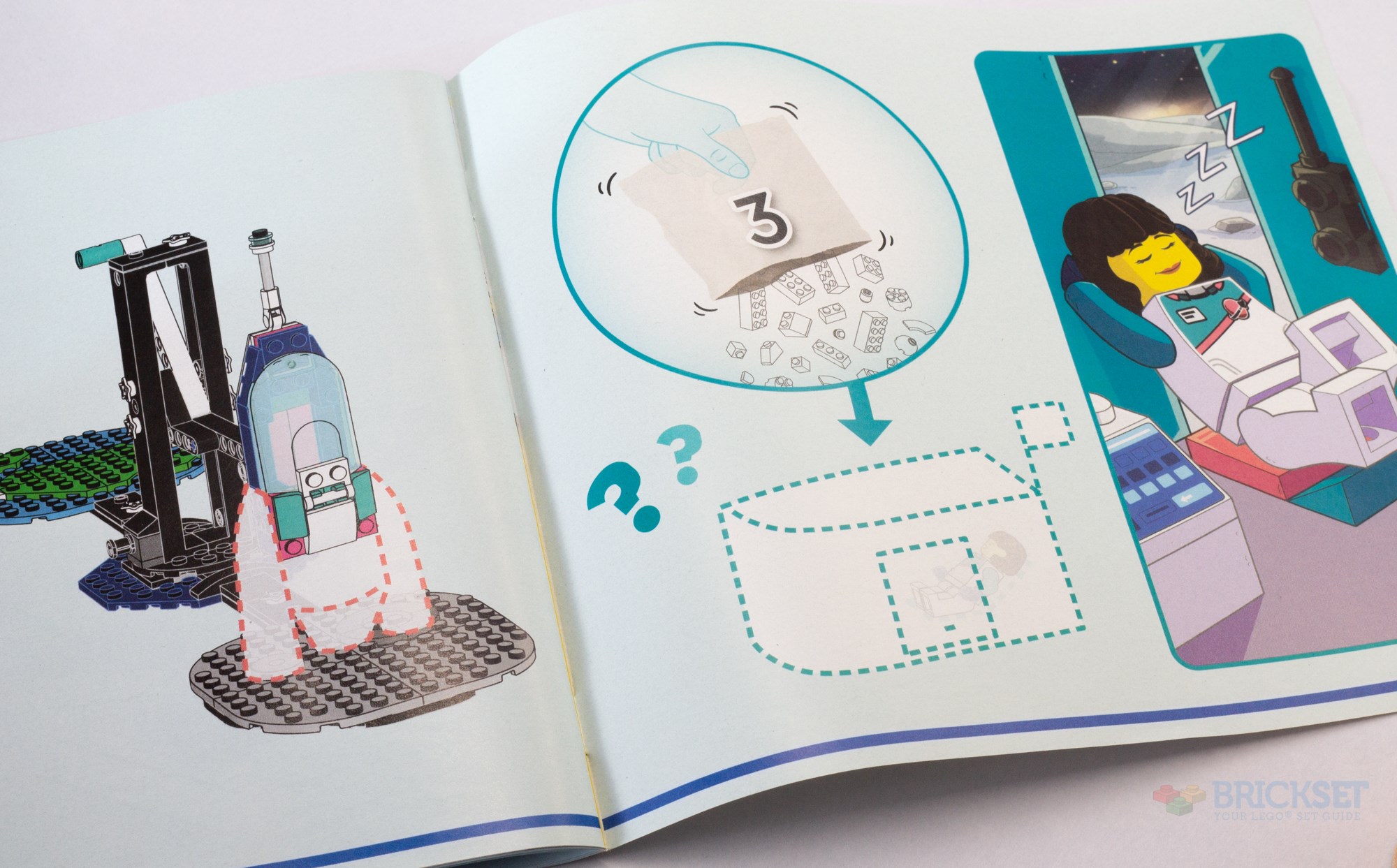 … because the Solve phase is where the builder must use the bricks provided from the next bag to fix that flaw, in whatever way they like. There are no hints beyond some very basic outlines and cartoon drawings of a potential solution.