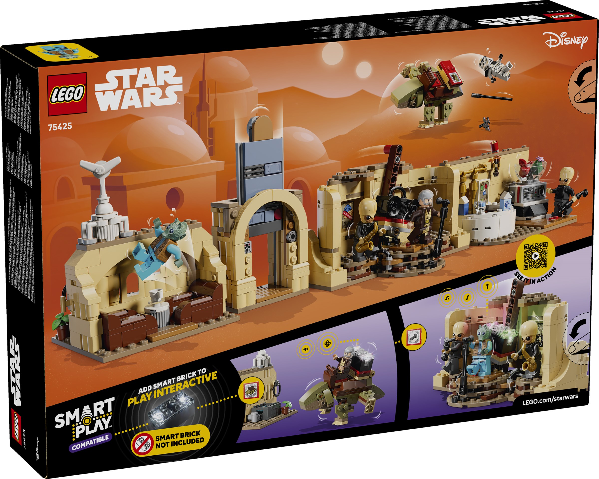 This LEGO SMART Play Compatible Set includes 2 LEGO SMART minifigures – SMART Obi-Wan Kenobi and SMART Greedo – and 3 SMART Tags. Add a SMART Brick from All-In-One Sets 75421, 75423 or 75427 (sold separately) to activate interactive music, singing and sounds, Dewback walking and sleeping noises, drink-mixer sounds, slurping noises and more.
