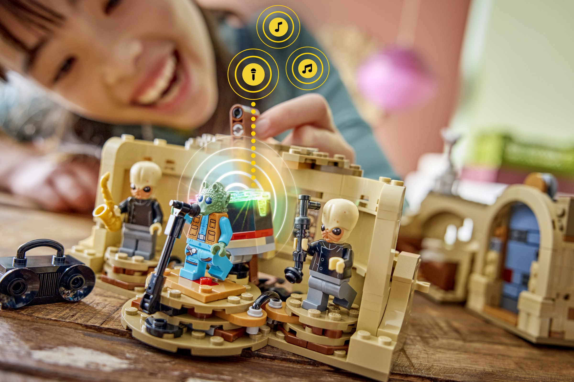 • Obi-Wan Kenobi (SMART minifigure), Greedo (SMART minifigure), Sand Trooper, Band Members (2)