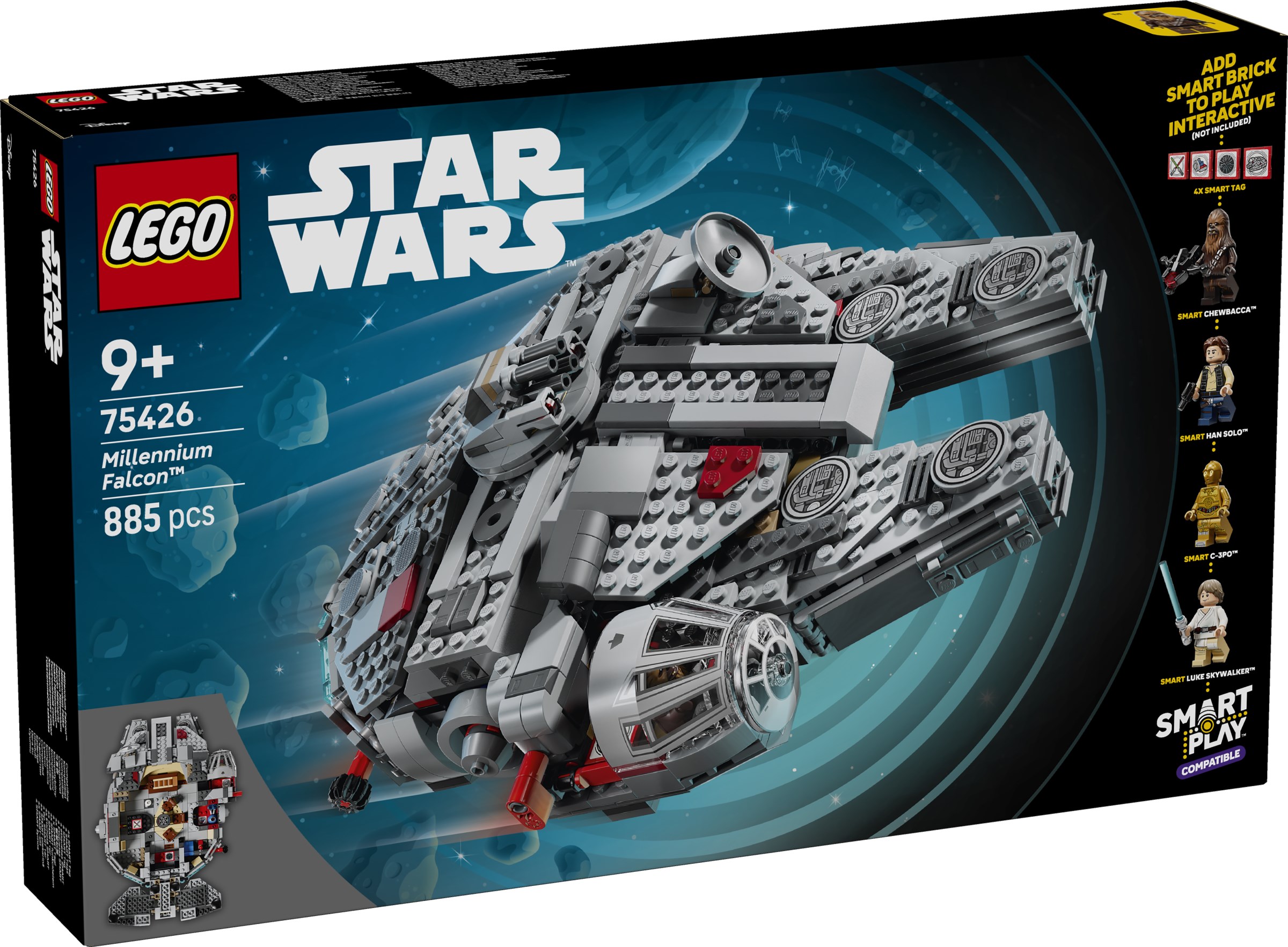 This LEGO SMART Play Compatible Set includes 4 LEGO SMART minifigures – SMART Han Solo, SMART Chewbacca, SMART Luke Skywalker and SMART C-3PO – and 4 SMART Tags. Add a SMART Brick from All-In-One Sets 75421, 75423 or 75427 (sold separately) for interactive play with dynamic lights and sounds, including the hyperdrive leaping to light speed, laser-shooting battles, fuel explosions, lightsaber clashes and more.