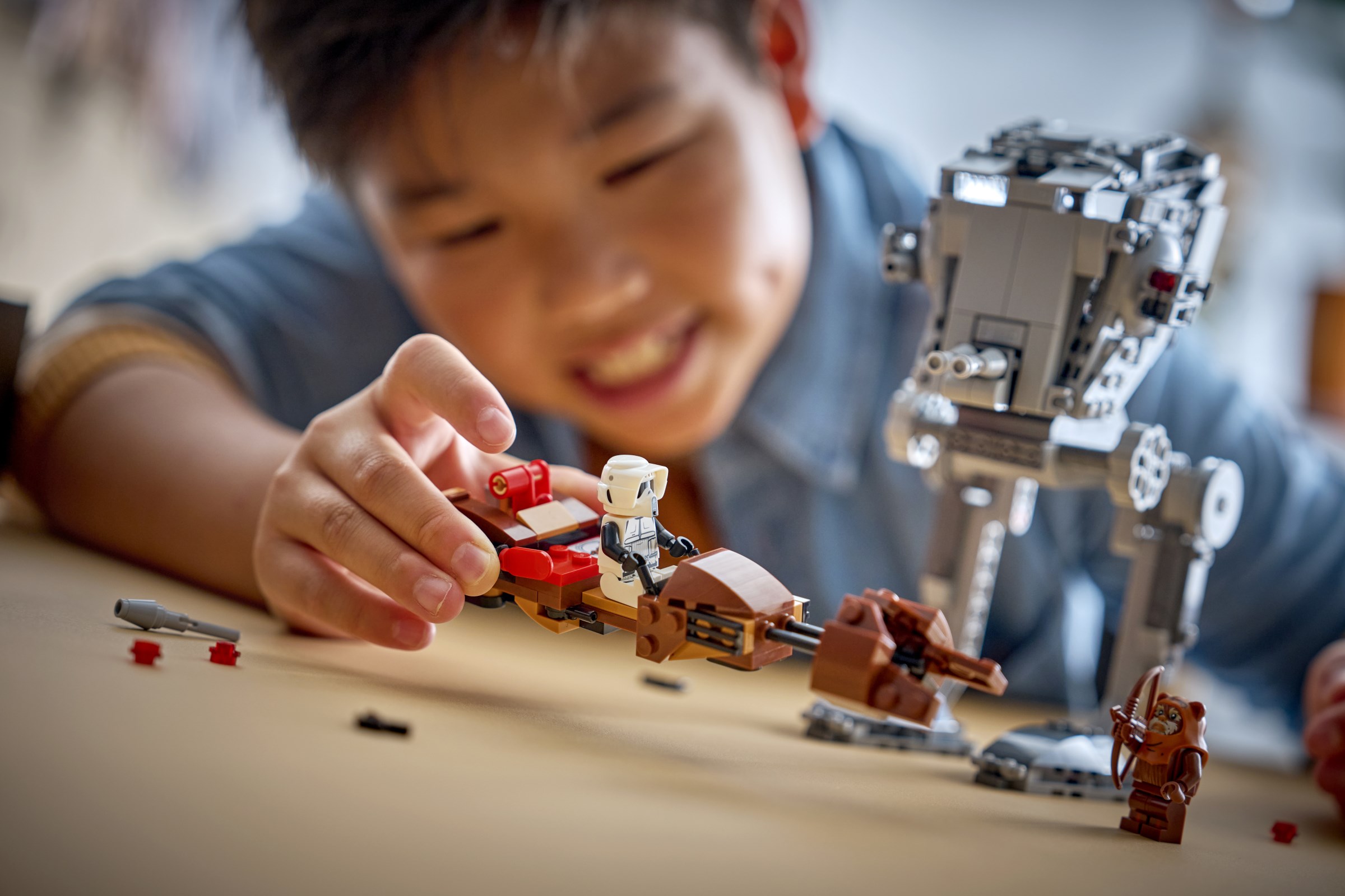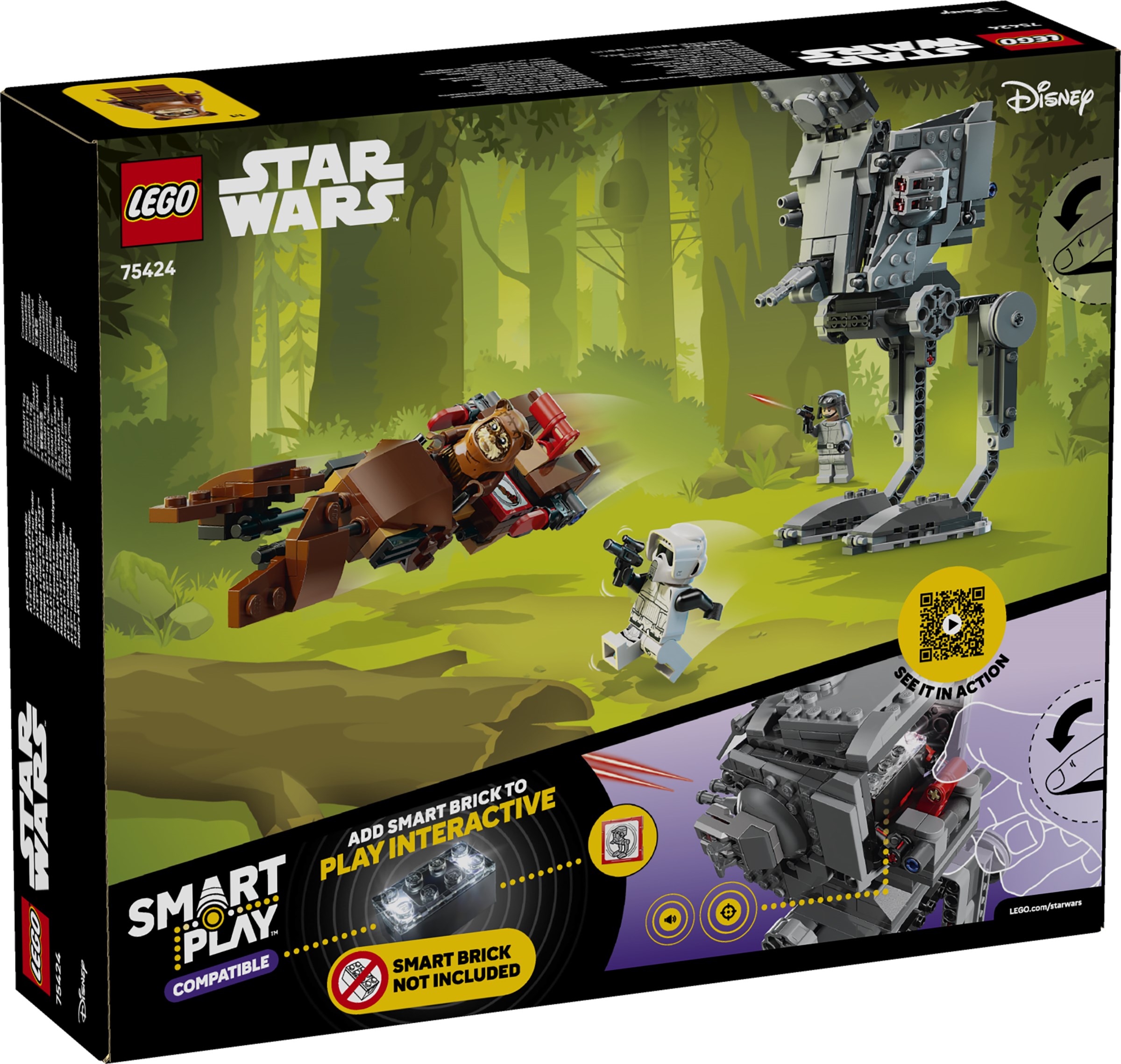 This LEGO SMART Play Compatible Set features a SMART Wicket LEGO minifigure and an AT-ST Driver and Scout Trooper to role-play Star Wars: Return of the Jedi battle scenes, plus 2 SMART Tags. Add a SMART Brick from All-In-One Sets 75421, 75423 or 75427 (sold separately) for interactive play with motion-activated, dynamic sounds and lights, including AT-ST and speeder bike engine noises, AT-ST walking sounds and laser-shooting battles.