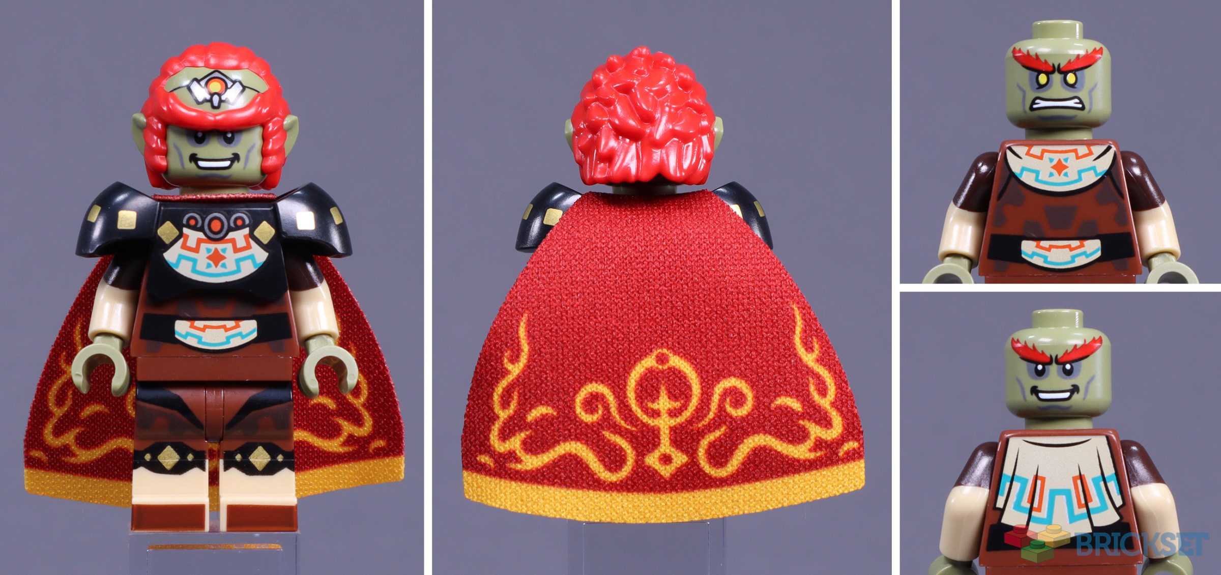 Unless you’ve looked at the back of the box, you would have missed this fantastic addition to this set. While monster Ganon first appeared in the first 1986 release, humanoid Ganondorf made his first physical appearance in the 1998 game depicted by this set, so it was a pleasant surprise to see him included properly in his minifigure size. We’ve been treated to some top-tier CMF-grade detailing: there is side printing on both the dual-moulded arms and legs, and detailed printing on both sides of the torso, even where covered by other elements.