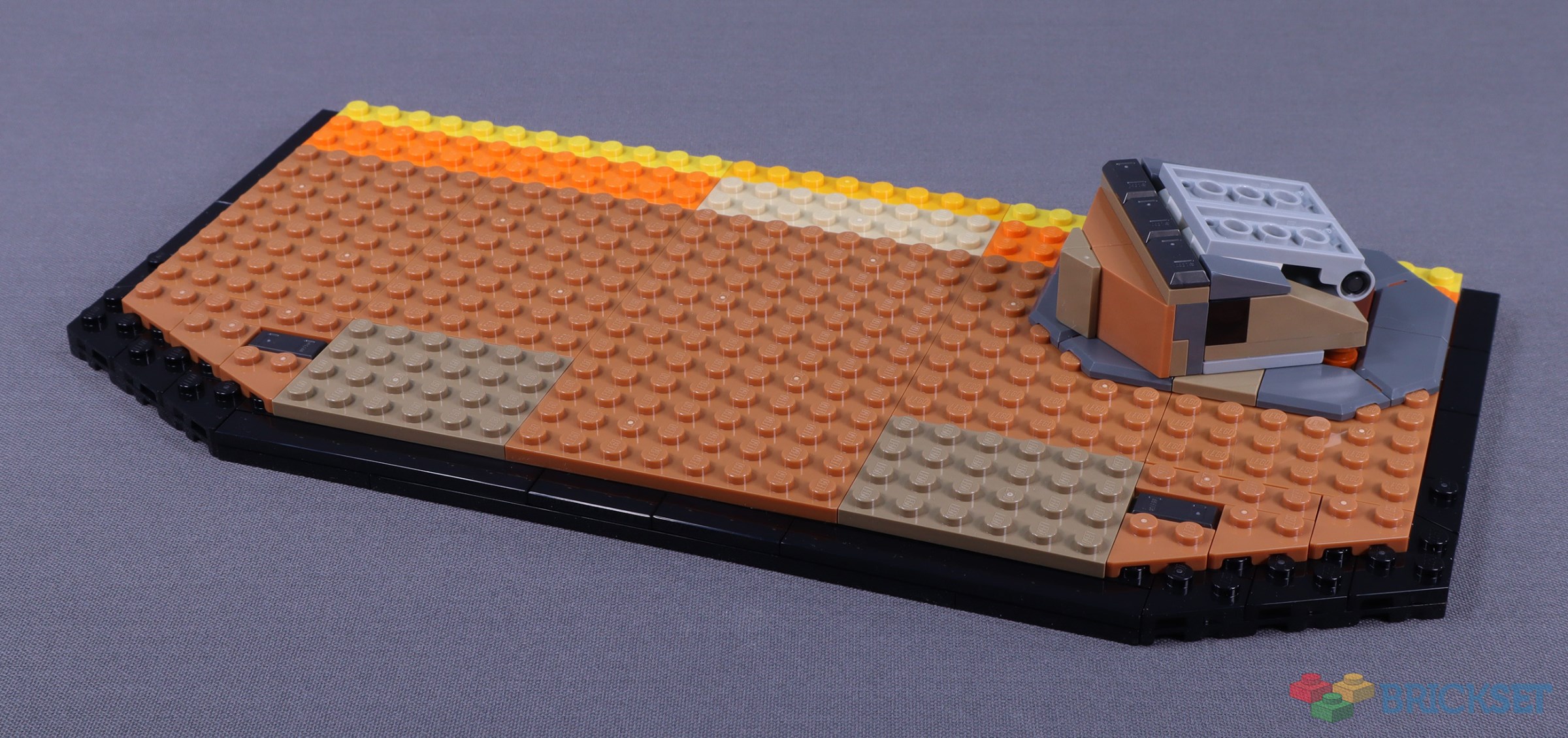 The base of the build is simple, allowing the focus to be on the battle. Some have compared it to 75334 Obi-Wan Kenobi vs. Darth Vader, but I’d argue that it’s much more akin to an architecture set like 21060 Himeji Castle, with a less bulky and flatter, thin platform with a dark edge for a clean display aesthetic aimed at an adult market. Omitting the setting entirely would have been a mistake in my opinion, so the designers have reduced its bulk (and ultimately frivolous part count) as far as reasonable.
