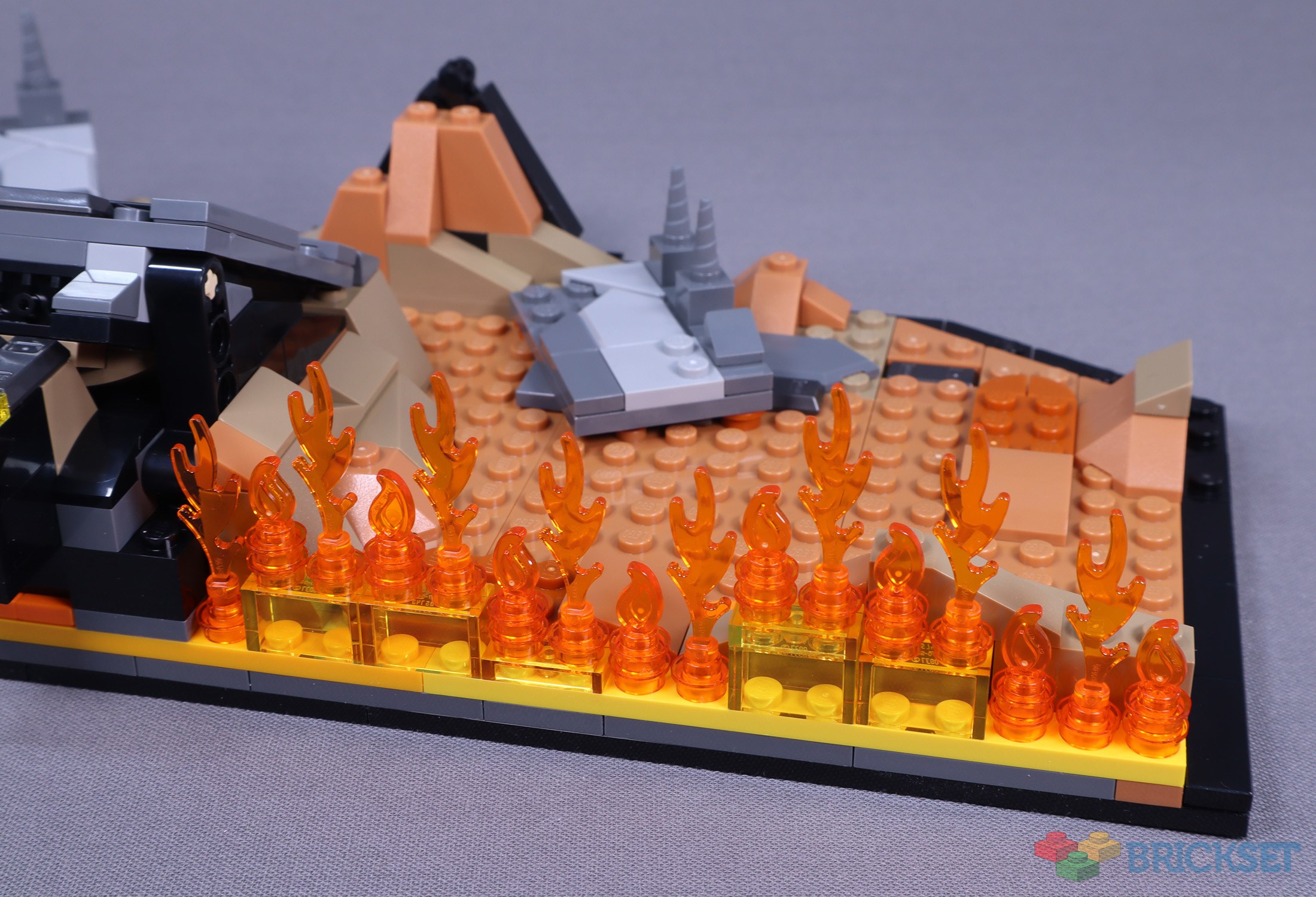 The fire is simple but effective, and perhaps it’s just the nostalgia in me that thinks the classic flame was perfect for this. If I’ve counted correctly, about 35 sets using this mould were available around the time this game was released—truly a time to be alive!