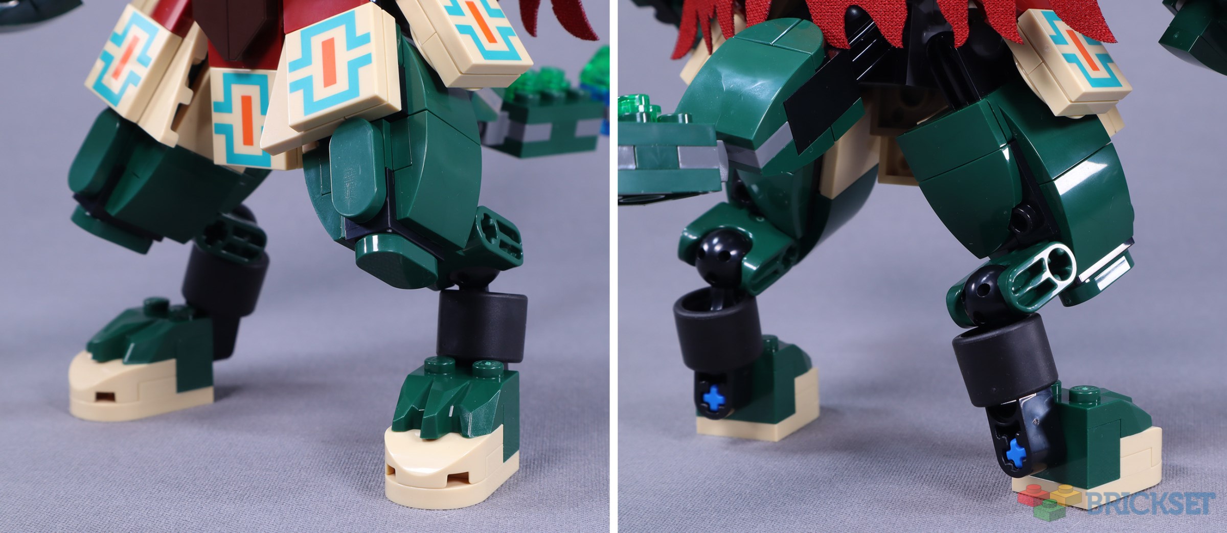More slopes and tiles create further excellent muscle details down here with his quadriceps. I can’t recall if this is the first time an official set has used tyres loosely around a joint to hide or bulk an area like this?