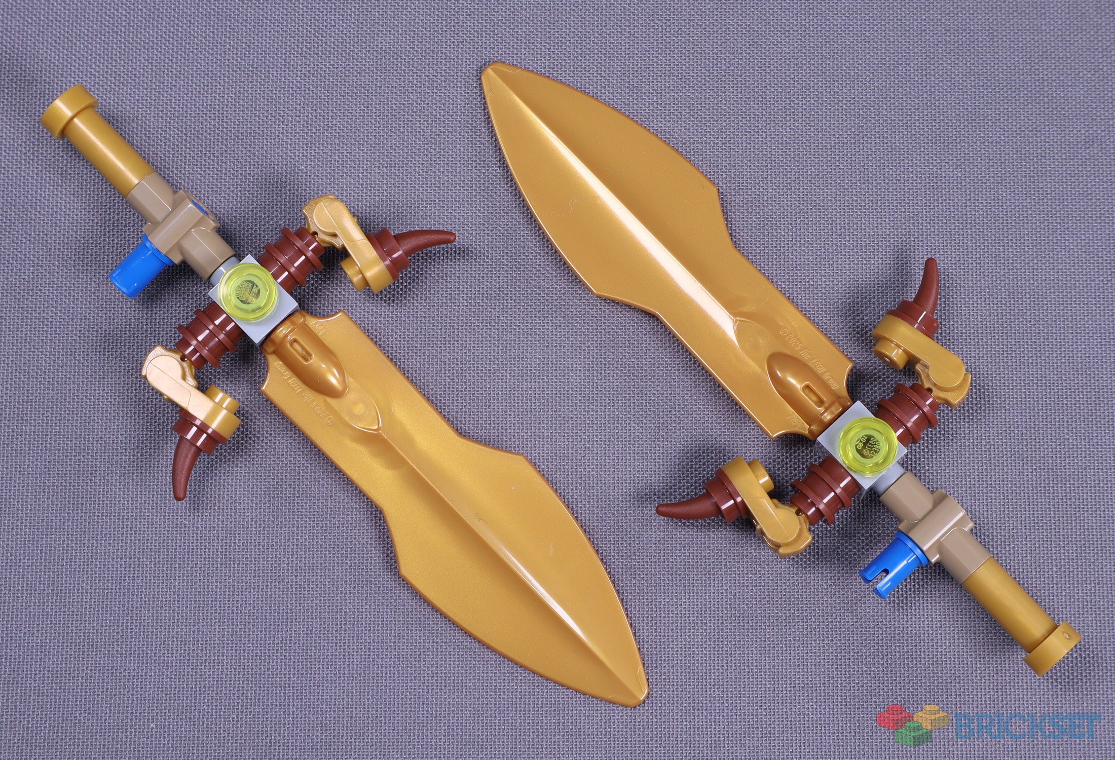 The pair of swords use a brand new element for their blades, and attach via a blue pin to the palm of Ganon’s hands, hiding the contrasting colour of the connection.