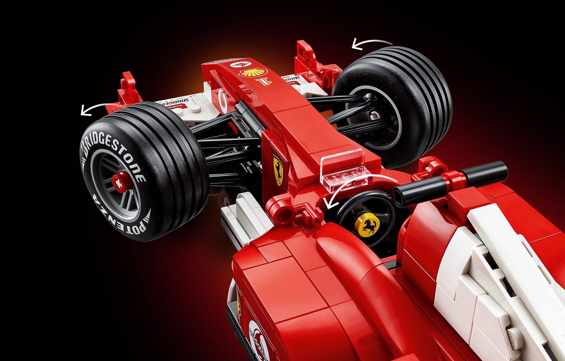 I appreciate the detail put in the front wing endplates, but the wing connection to the nose is just... wrong. It's supposed to be two thin pillars with an opening in the middle, here it's a solid block. It's closer to the early-season 1996 Ferrari rather than the 2004 one. Ironically, 8362 is far more accurate in that regard.