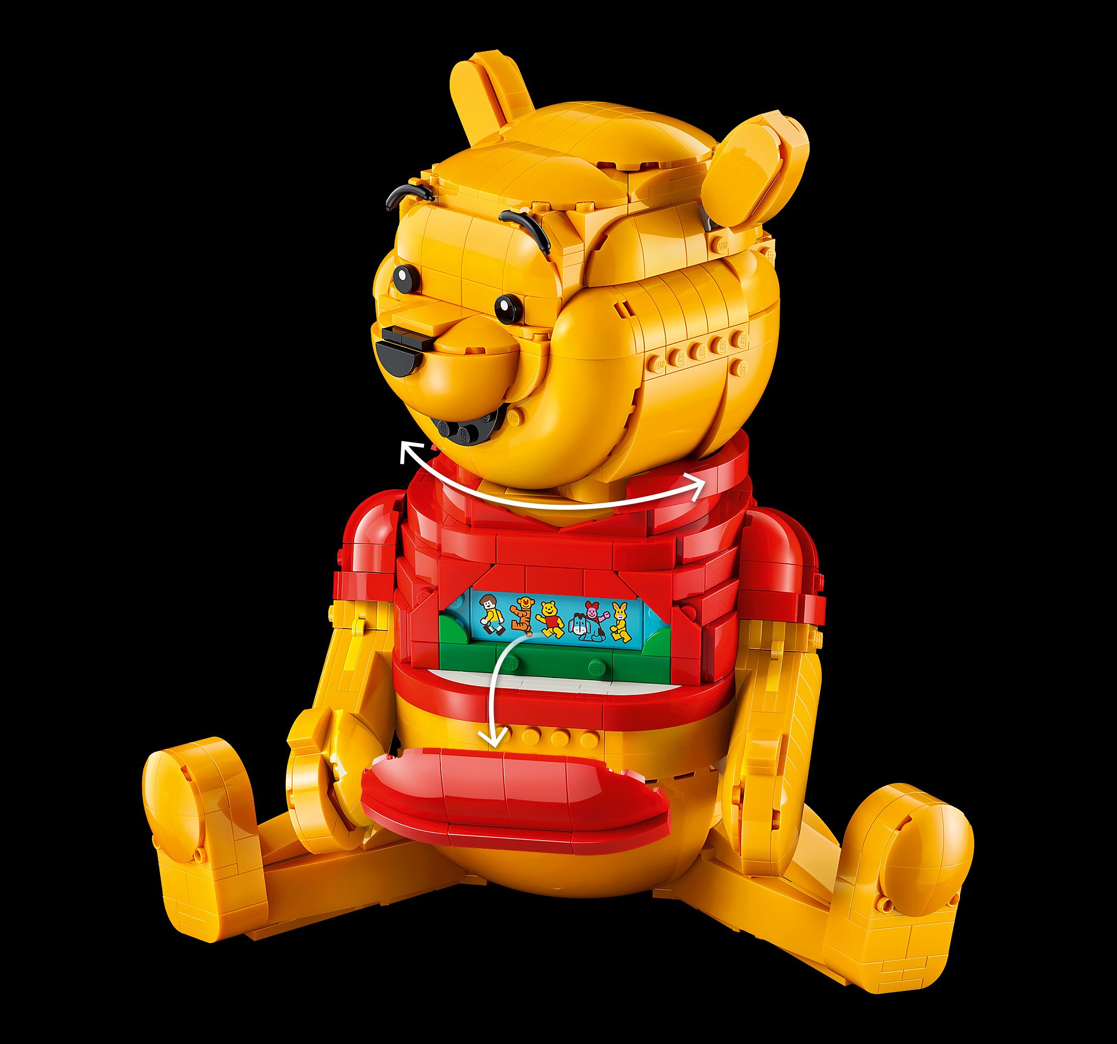 43300 Winnie the Pooh contains 1399 pieces and depicts Pooh munching on a pot of honey, hence his cheerful expression! There are some neat Easter eggs to discover, shown after the break.