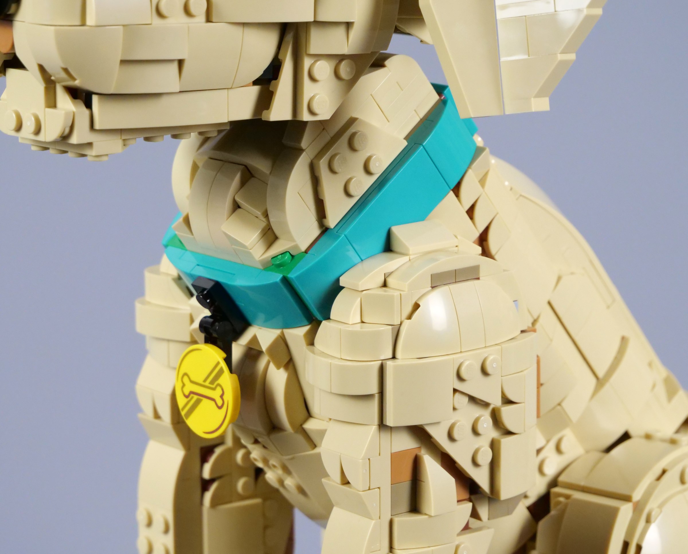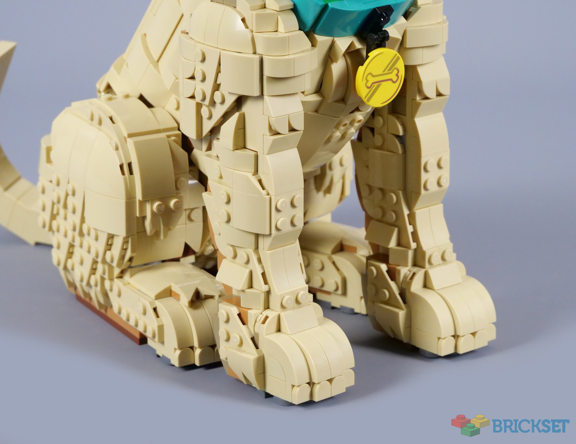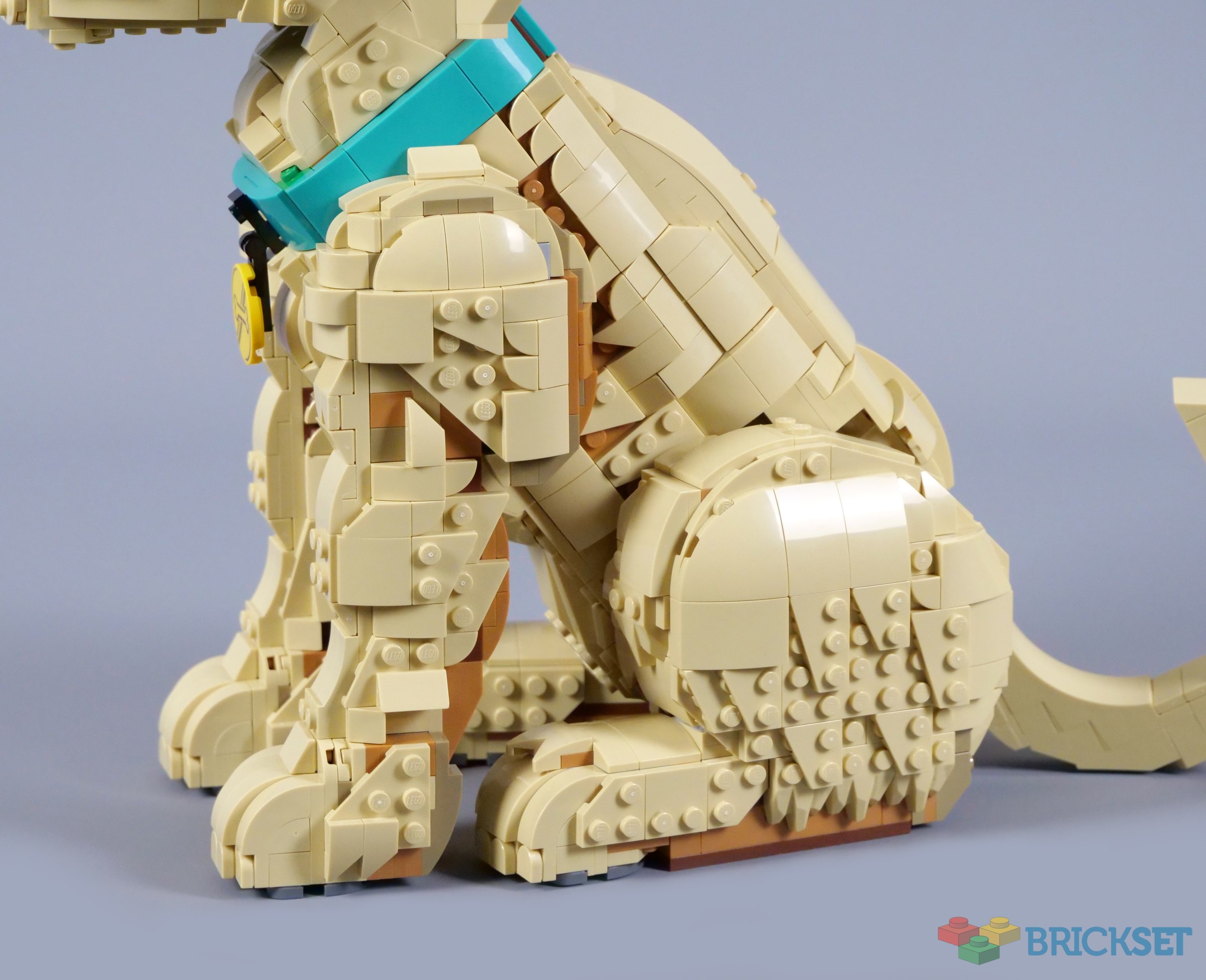 The head in particular is outstanding, although the gap at the back of the neck bothers me. The green parts visible on the collar are annoying too, so there are definitely a few details that could be improved. I think the price of £129.99, $139.99 or €139.99 feels reasonable taken in isolation, but I cannot help comparing it to 21349 Tuxedo Cat, which offers better value at £89.99, $99.99 or €99.99. I would expect the dog to be more expensive, but not quite this much.