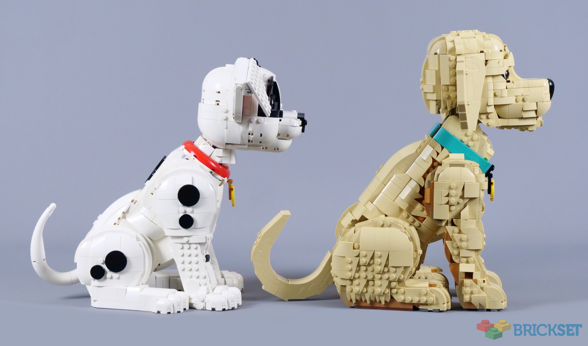 The Golden Retriever is comparable in size to 43269 101 Dalmatians Puppy, measuring 30cm tall. I think the pair look reasonable together on display, although the Dalmatian is clearly more cartoonish to match its animated inspiration. Of course, there are similarities in how these dogs are constructed, but fewer than I anticipated, given their relatively close piece counts.