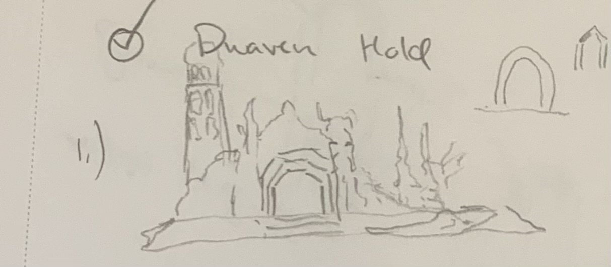 I typically begin my designs by sketching various concepts. The layout of the Dwarf Stronghold was first explored in 2024/early 2025 under the plan of designing an Orcish Stronghold (does this incur a grudge?), however I never completed the design of this original concept.