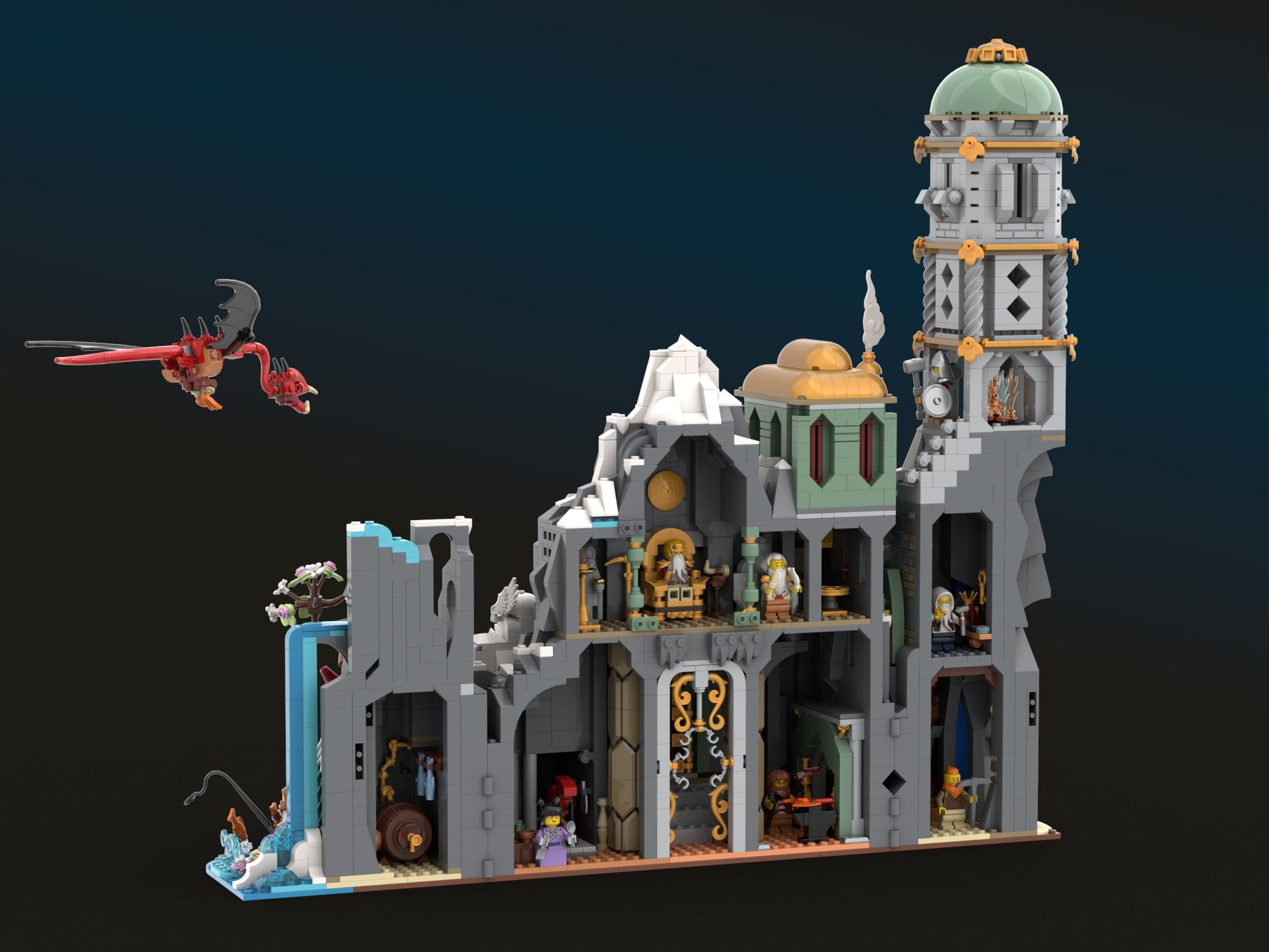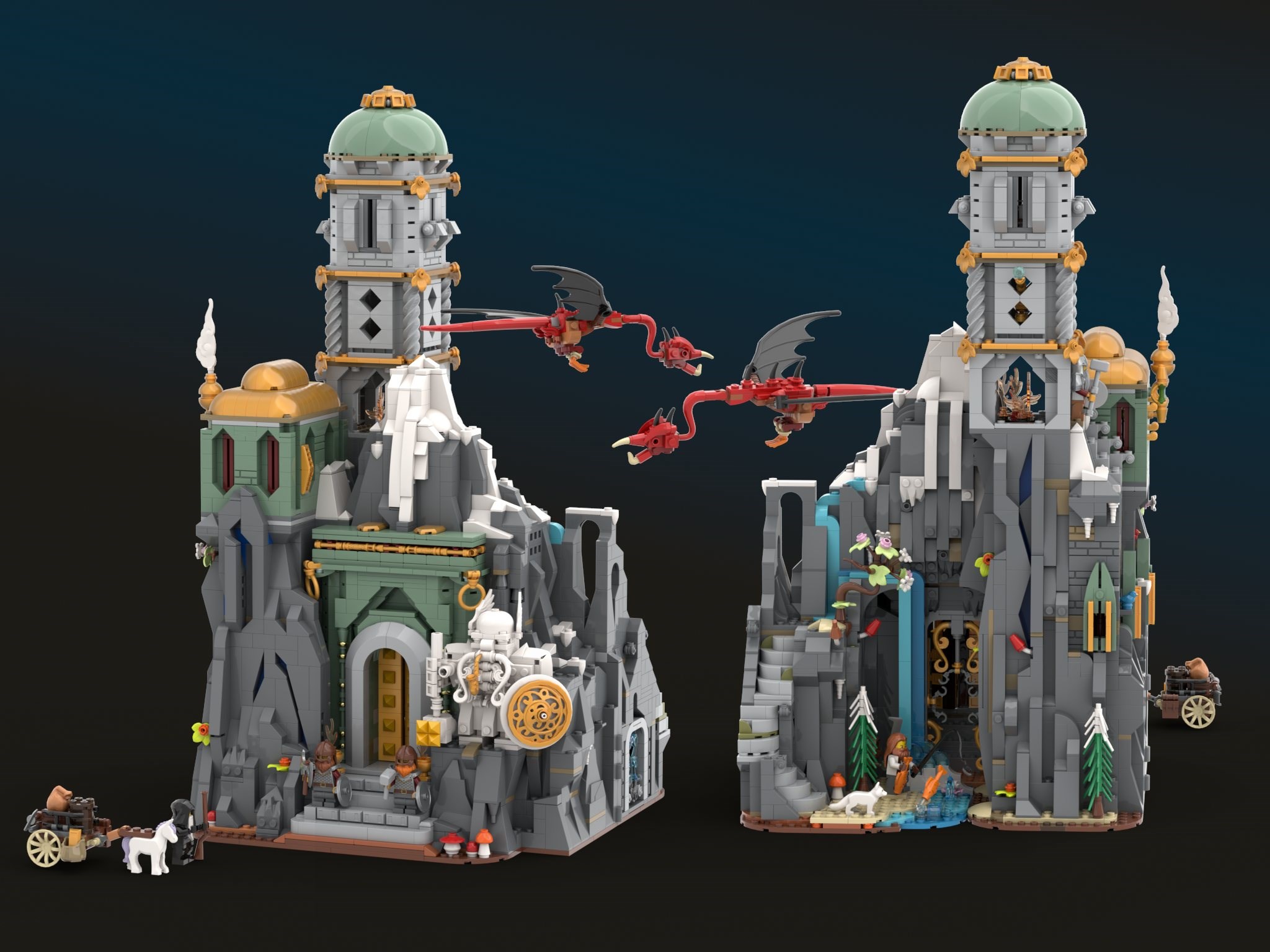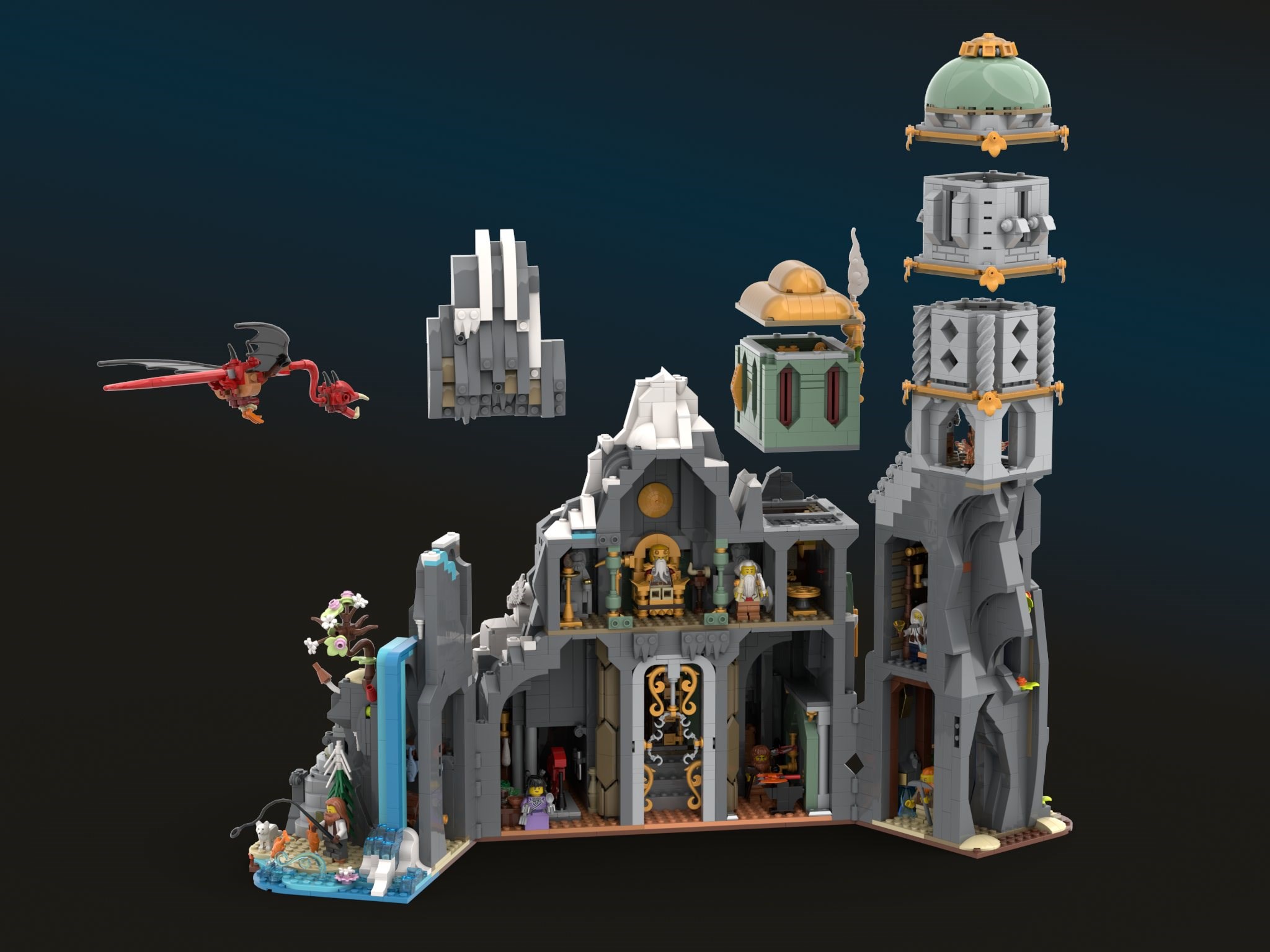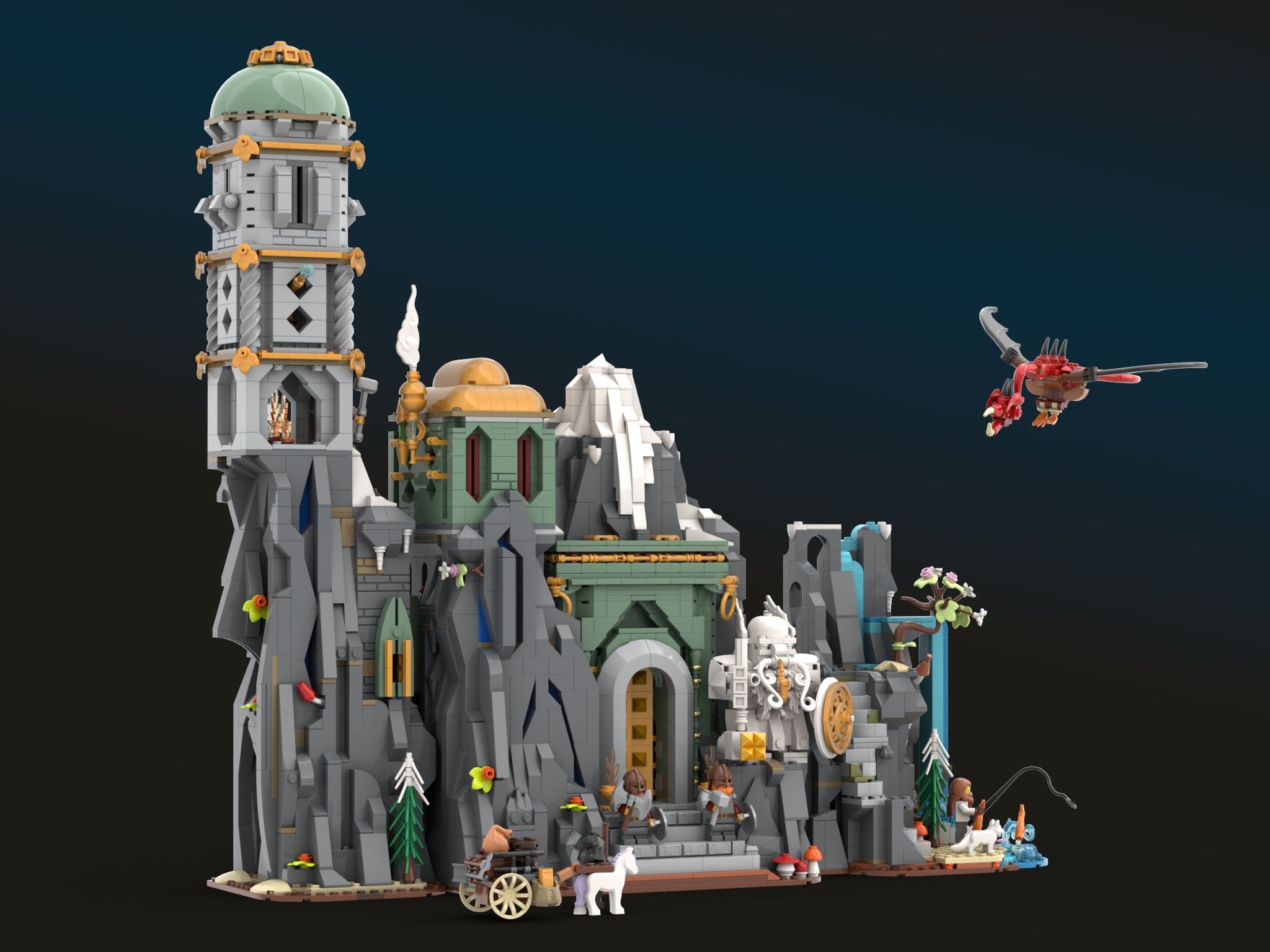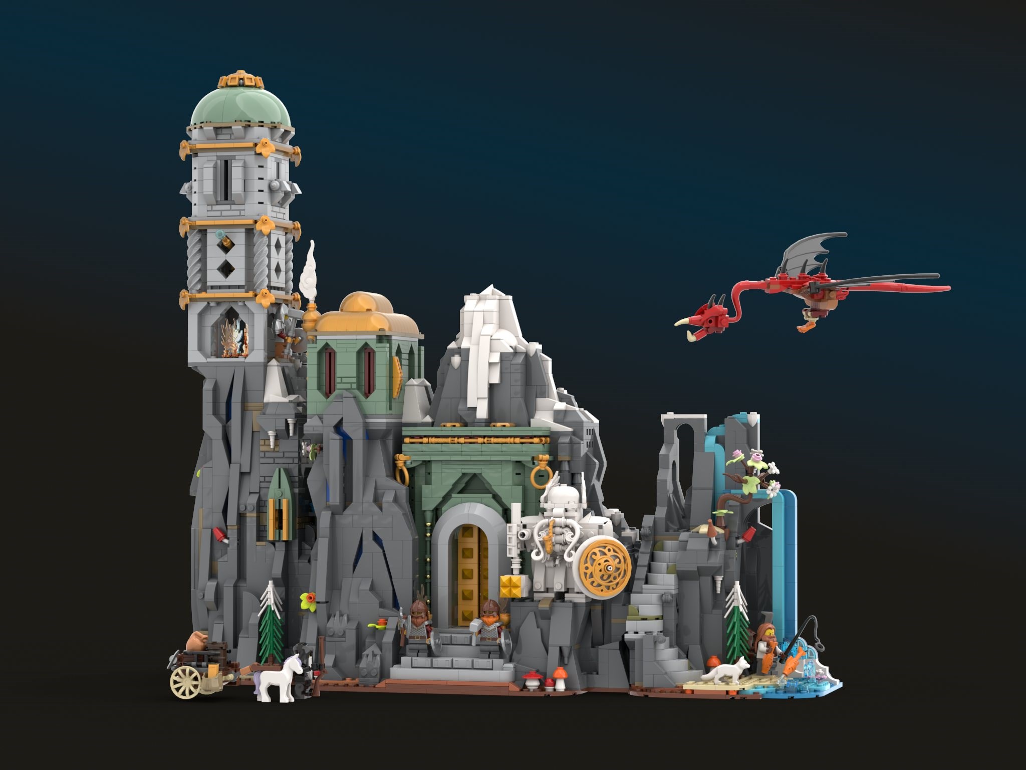 The finished build can be opened or closed, showcasing different display and play features in the two modes. When opened, the interior of the Stronghold is accessible. When closed, the hold appears truly carved from the mountain itself. The wyvern was particularly fun to design, as I'd never seen a LEGO wyvern before (dragons yes, but not wyverns). Its styling was inspired by 31161 Medieval Dragon Medieval Dragon, which I was honoured to win in the Summer Joust 2025. I hope you enjoy the Dwarf Stronghold, and I hope it adds something new and accessible to the world of LEGO Fantasy.