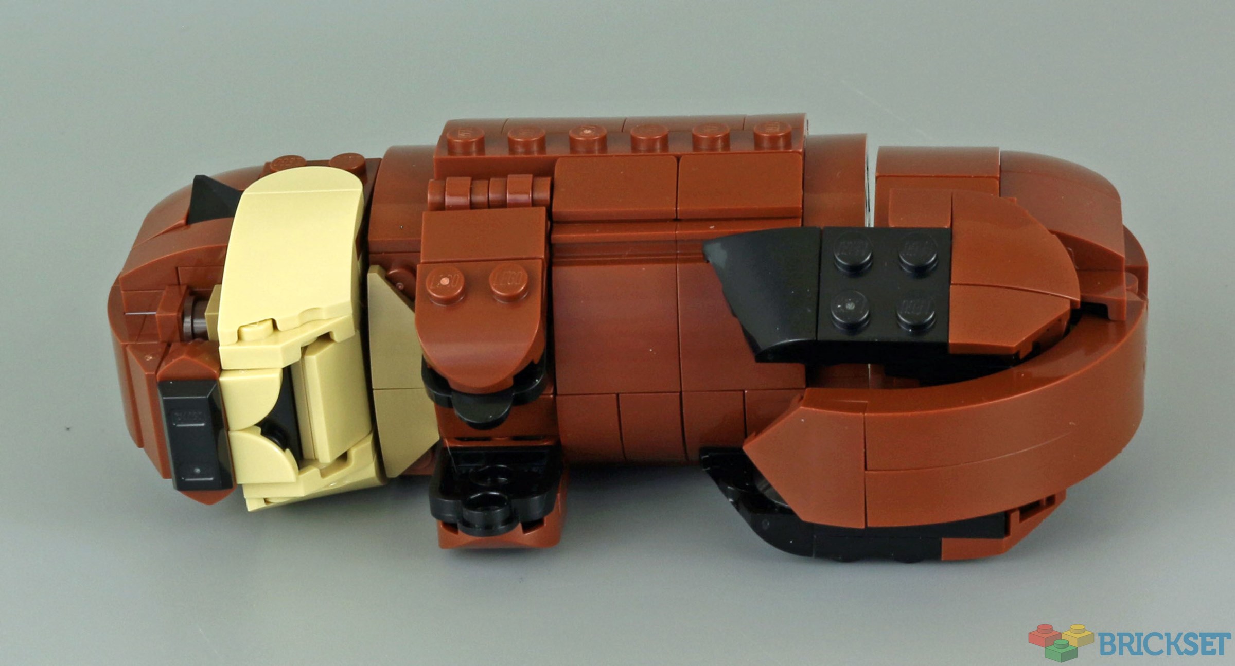 This view shows the otter's head from a slightly different angle. There are some new-ish curved pieces in brick yellow and reddish brown in this set, and they're used to good advantage in shaping the otter's head.