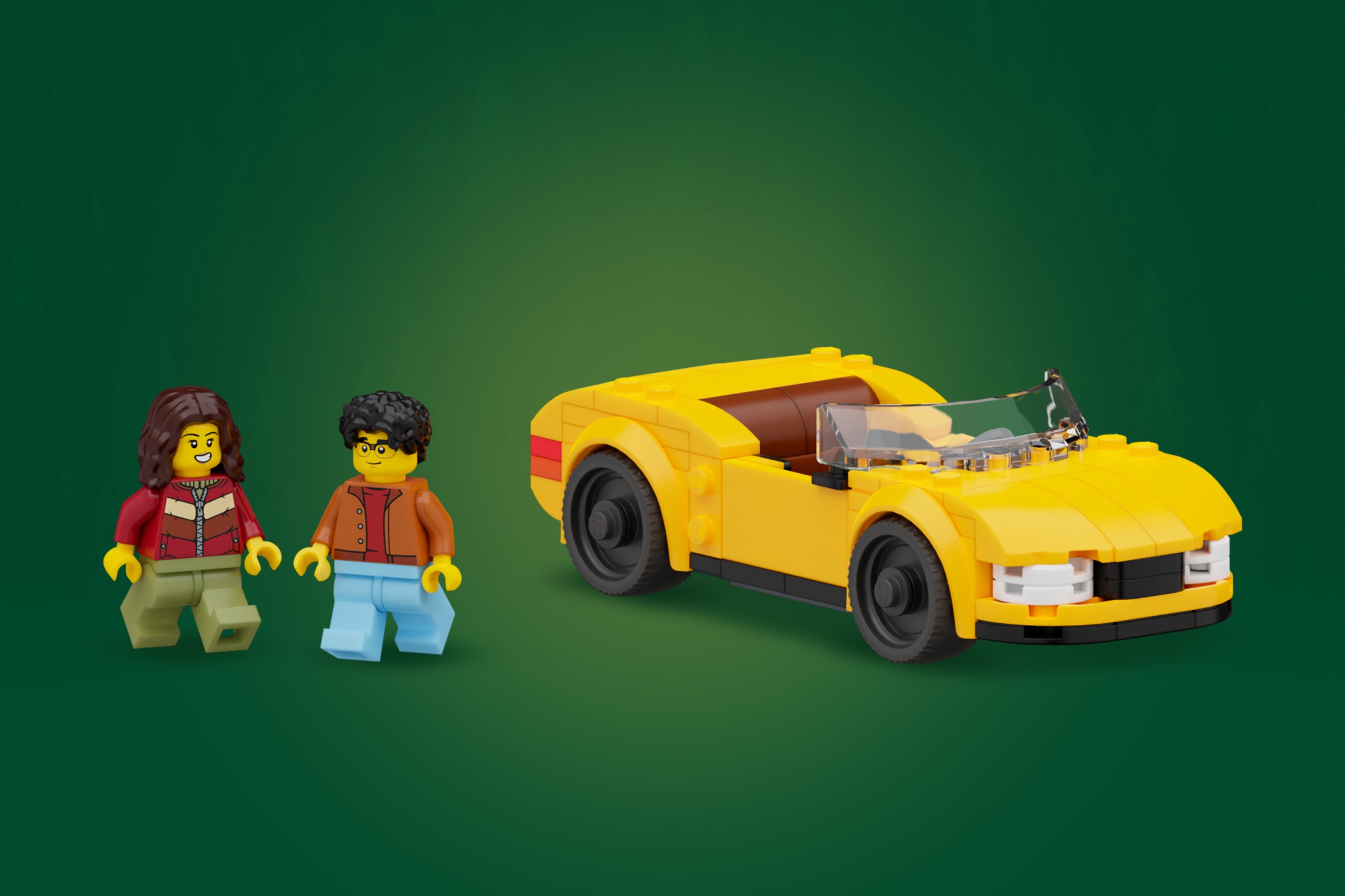 This model is inspired by contemporary homes located in the woodlands. Included are two minifigures, a man and a woman, and their orange-yellow car that can pull in comfortably into the garage.