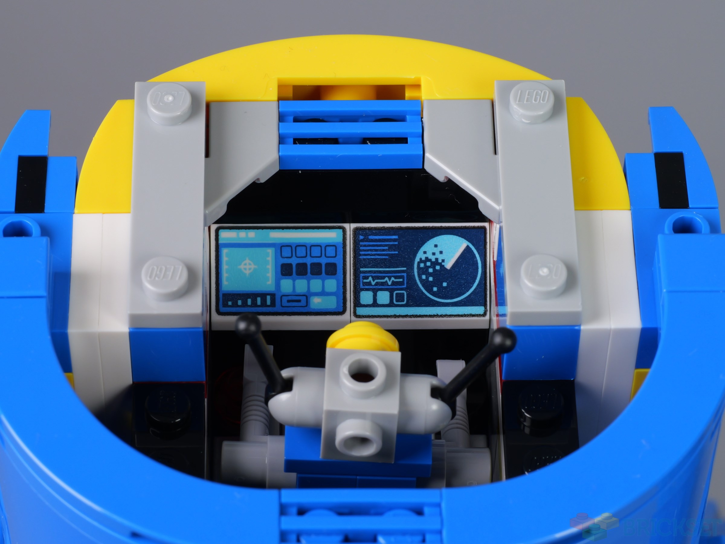 As with 40649 Up-Scaled LEGO Minifigure, there's a 'pilot' inside the head, accessed by removing the top of the helmet. This time it's a robot which closely resembles those in classic space sets who sits inside, in front of a pair of printed control panels.