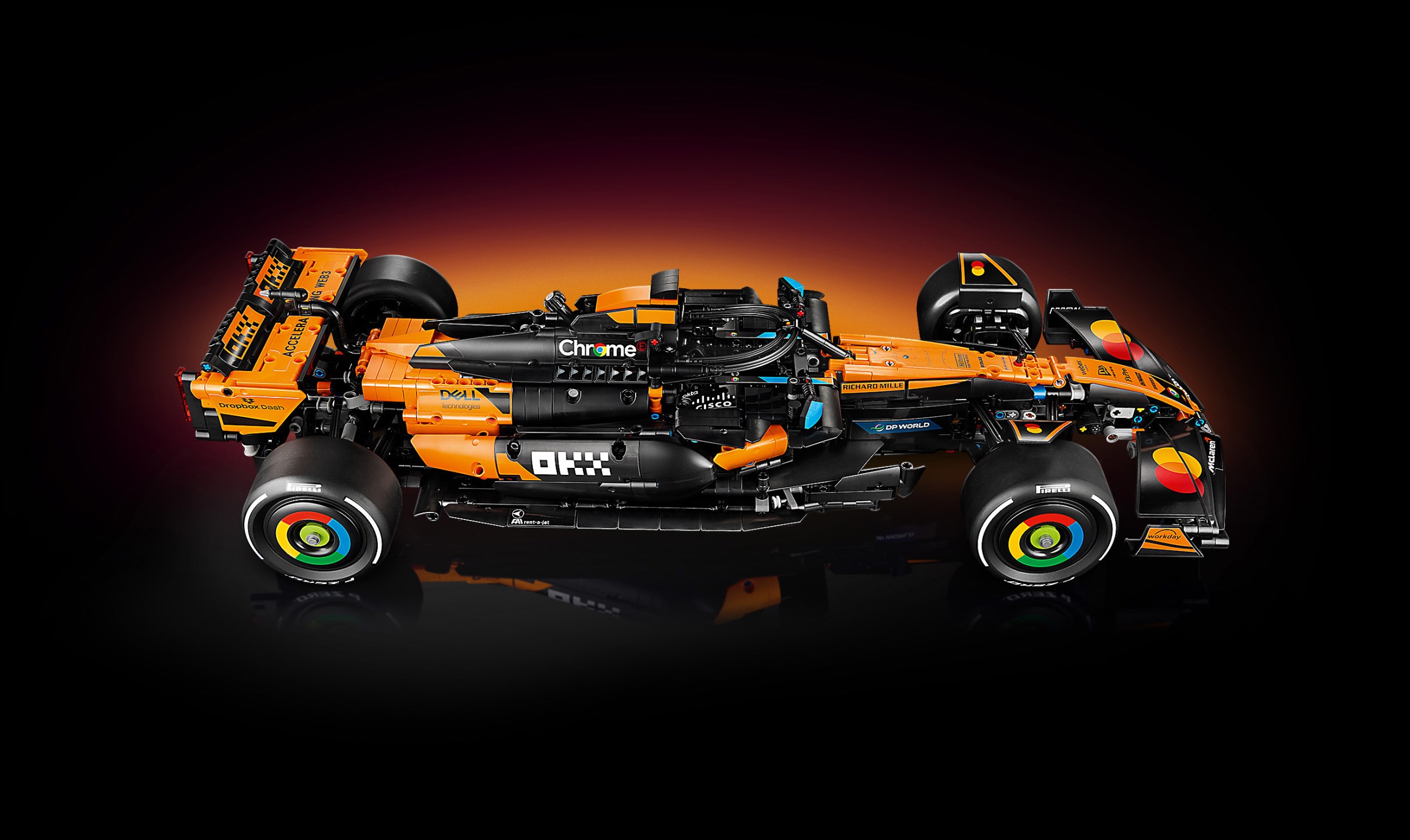 Assemble the details of the 2025 McLaren MCL39 F1 car as you build the steering, suspension, gearbox and differential. Activate the DRS, then remove the engine cover to examine the V6 engine. Enjoy your victory lap as you proudly display the model in pole position as a tribute to your passion for F1.