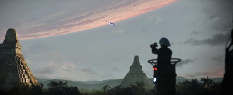 Eadu's mountainous terrain is difficult to navigate so the U-wing crash lands on the planet just a short distance from the research facility. Cassian prepares to execute Galen while Jyn attempts to rescue him but neither is successful as Krennic arrives, having tracked Bodhi Rook's defection to Eadu. A rebel bombing run causes total confusion as Jyn rushes to the aid of her father but he is killed in an explosion and the rebels leave once again, this time on board an Imperial Cargo Shuttle.