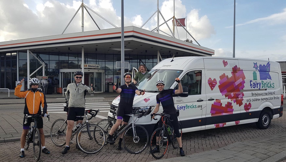 Having crossed the North Sea, the cycling resumed on Friday morning. The Netherlands is famous for its flat terrain so there were few hills to contend with, although the team needed to cover 130km on day two which is not an easy task! While Huw and the other cyclists continued their journey, the Fairy Bricks van stopped to make a couple of LEGO deliveries in The Hague and Amsterdam.