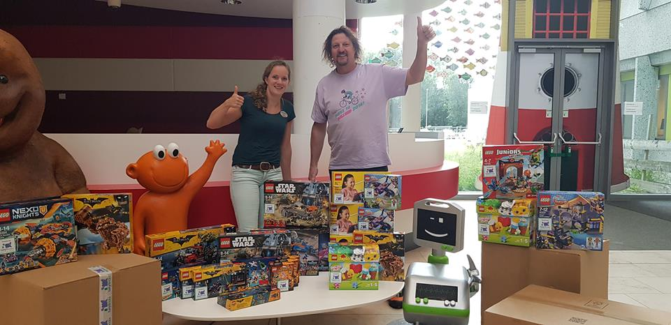 This journey is being undertaken in aid of Fairy Bricks, a wonderful charity which makes LEGO donations to hospitals around the world. Fly is pictured here, delivering a donation to the Juliana Children's Hospital in The Hague.