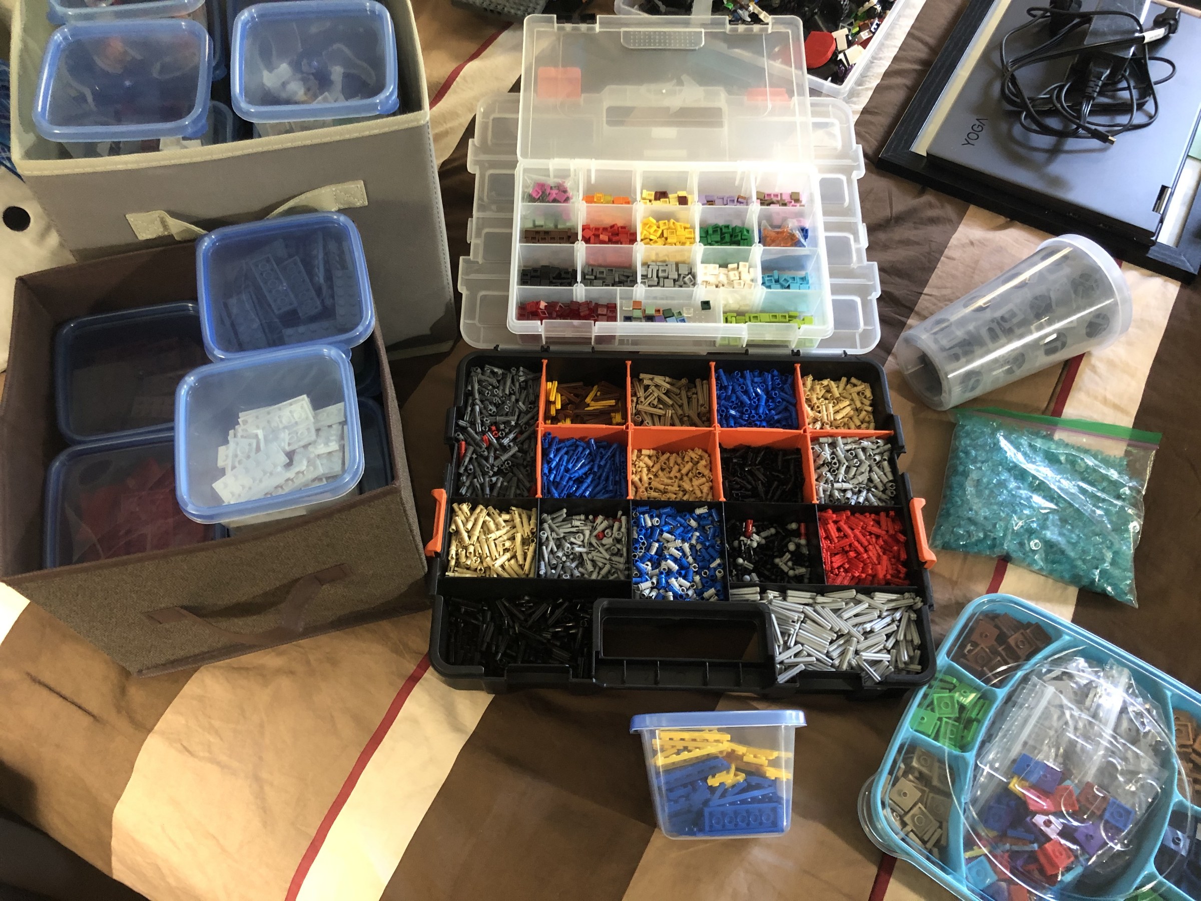 When I’m done with a group, I’ll usually end up with a cup of tiles, a cup of bricks, a cup of clips/handles, etc. One by one, I go through the cups and get them to their eventual destination. Some cups I’ve left roughly unsorted, since it doesn’t hurt to have a cup of the same size Technic elements all grouped together, and I’ll have time later on to go in-depth. A decent amount of time has also gone into reorganizing my previous storage, and sourcing my newer additions. It’s ongoing, of course, as it always will be!