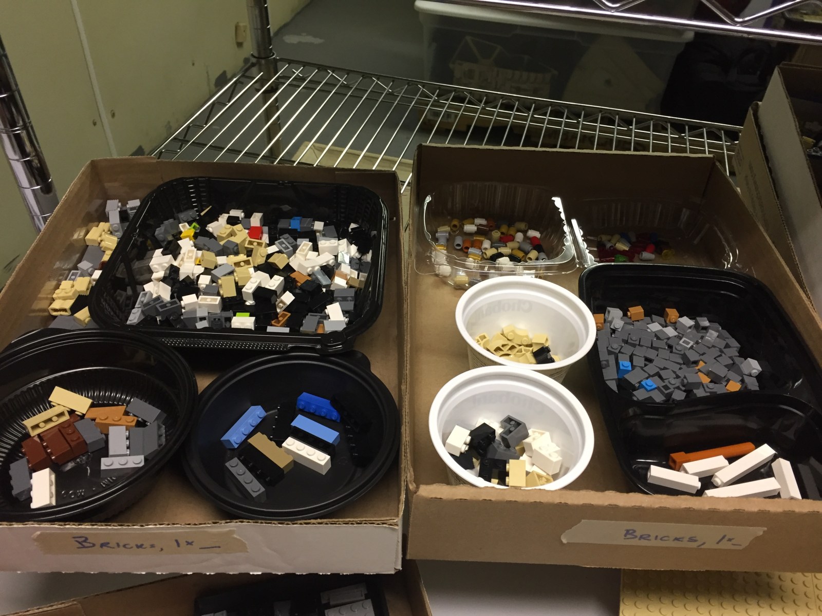 I'm in the same spot as you, just getting started on a functional LEGO space. I'm also glad to see that I'm not the only one repurposing take-out containers. :)