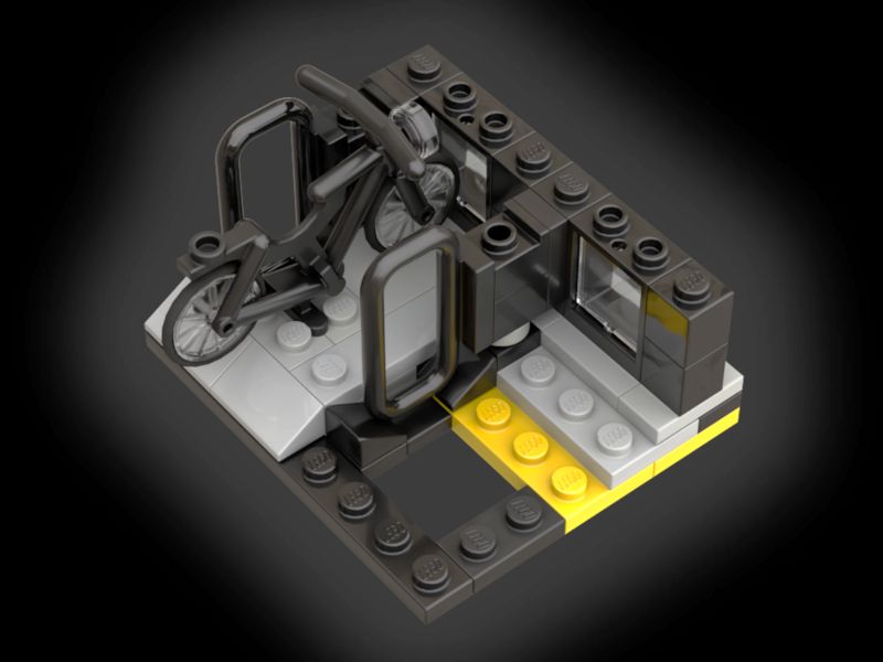 The twin bike racks utilise part 6187, mounted sideways, capturing the iconic upside-down “U” shape perfectly. Just set it into the ground with some cheese slopes and you’re good to go! The 1x2x2 glass panes are used here to make space for the front tyre: it would have been too tight of a fit against a standard brick.