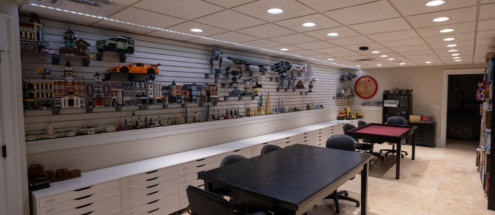 Then again, his house must be enormous too, since even just these two LEGO rooms are huge, especially the one with the slatwall display. This looks as if it is at least 10 to 15 meters long. That is longer than our entire house (which in itself isn't small, at least by German standards), and that is only one room.