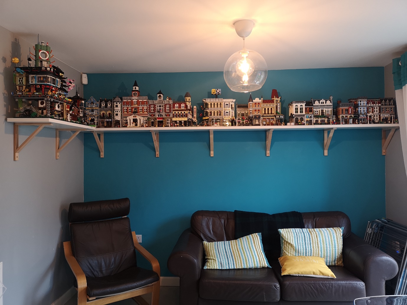 I wish I had the courage to mount my modulars on shelves in the way you have, @Mimas , but I'd be afraid they'd eventually crash to the floor. My wife had her collection of Sylvanian Families on display in this way in our bedroom - but one night, there was an almighty crash followed by weeping and wailing (my wife's, let me be clear) as we picked up squished bunnies and pandas and cracked dining room tables from the floor.
