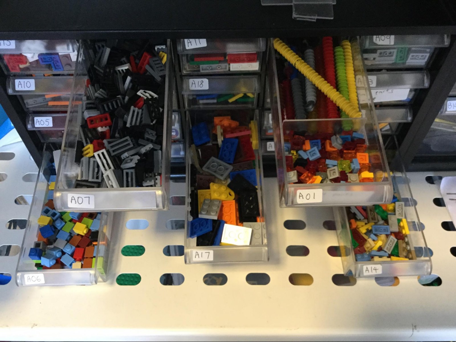 Taking the box from the shelf, opening the 2 latches, opening the cover, and getting the part I need. This is not a very efficient method when building compared to using drawers. The advantage of using these would be that they are easy to transport, so you could put a small selection of spare parts to take to LEGO exhibitions, etc.