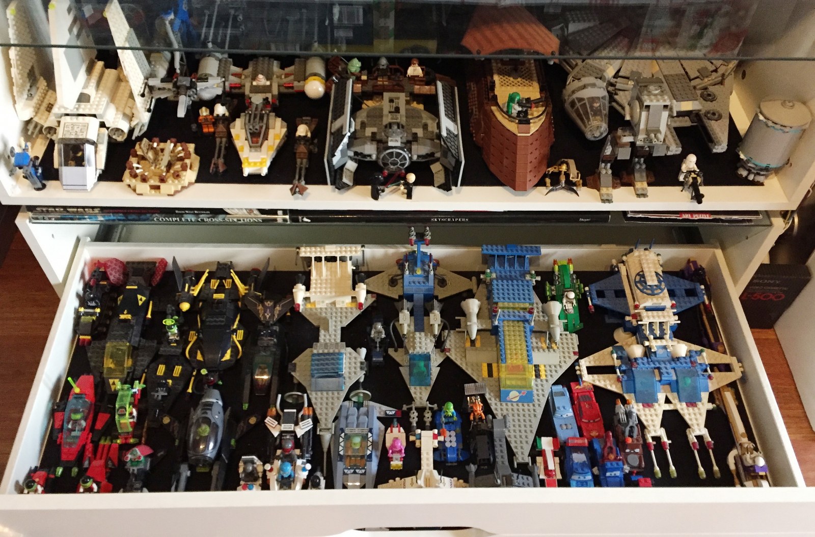 Nice setup. What a great idea, keeping sets built up In drawers, although it depends how many sets / drawers you have. I do see quite a lot of dust on the old space sets mind. One of your comments has reminded me of a series of stories in the back of one of the Lego magazines. @Huw is it worth for fun asking people who have either written one of these or not to get the "other halfs" view. Let them write an article. I think they would make us all smile. "Its Blo''' everywhere. I cant move in the ....... room for it and Amazon knock on the door every day" etc
