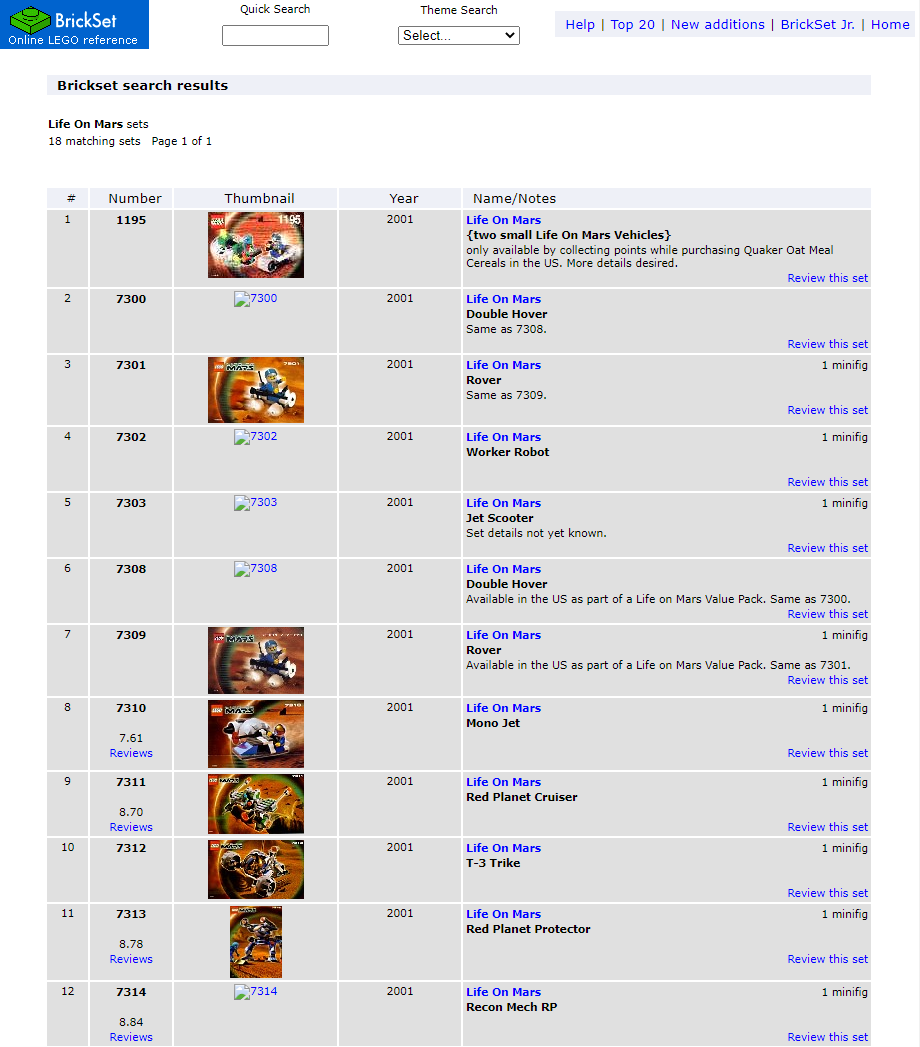 Perhaps surprisingly, users could rate sets and write reviews, although there was no requirement to log in: User accounts would not be added until 2005.