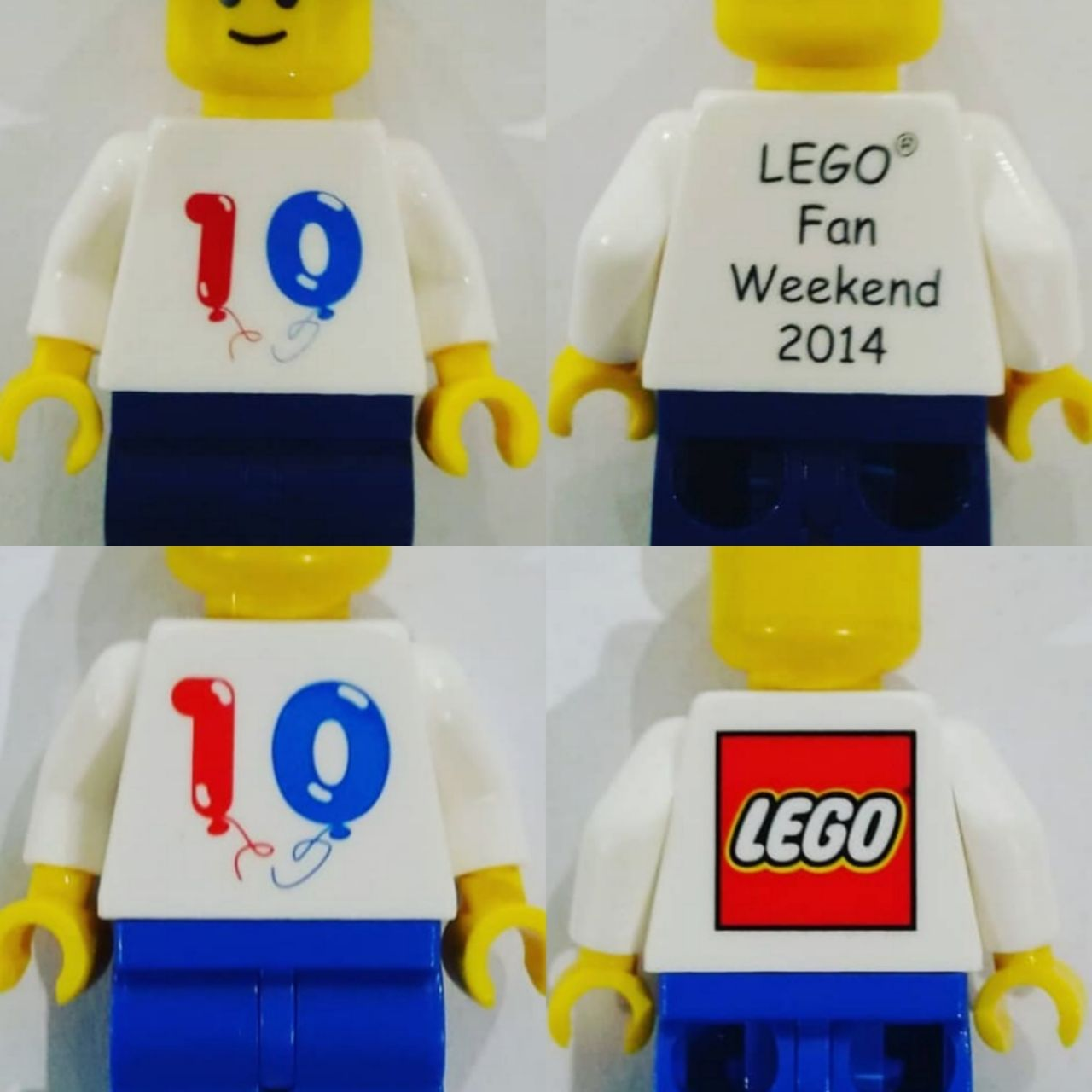 Those who visited last officially held Skaerbaek Fan Weekend event back in 2014 know a souvenir minifigure. There’s a graphic «10» icon formed from red and blue balloons on the front.