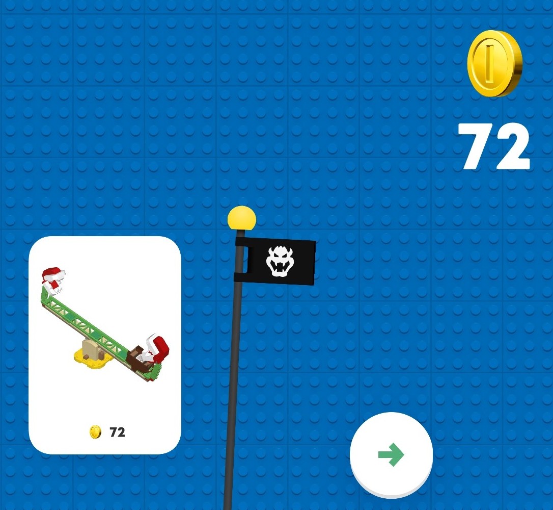 This is probably my favourite set so far. One of the reasons it's so fun to score coins is that Mario gives direct feedback. The screen and sound effects show when you're earning coins, and it's exciting to hear the trill of multiple coins. When Mario bumps into a Piranha Plant, he grimaces and groans. It's fun to succeed, and it's even fun to fail!
