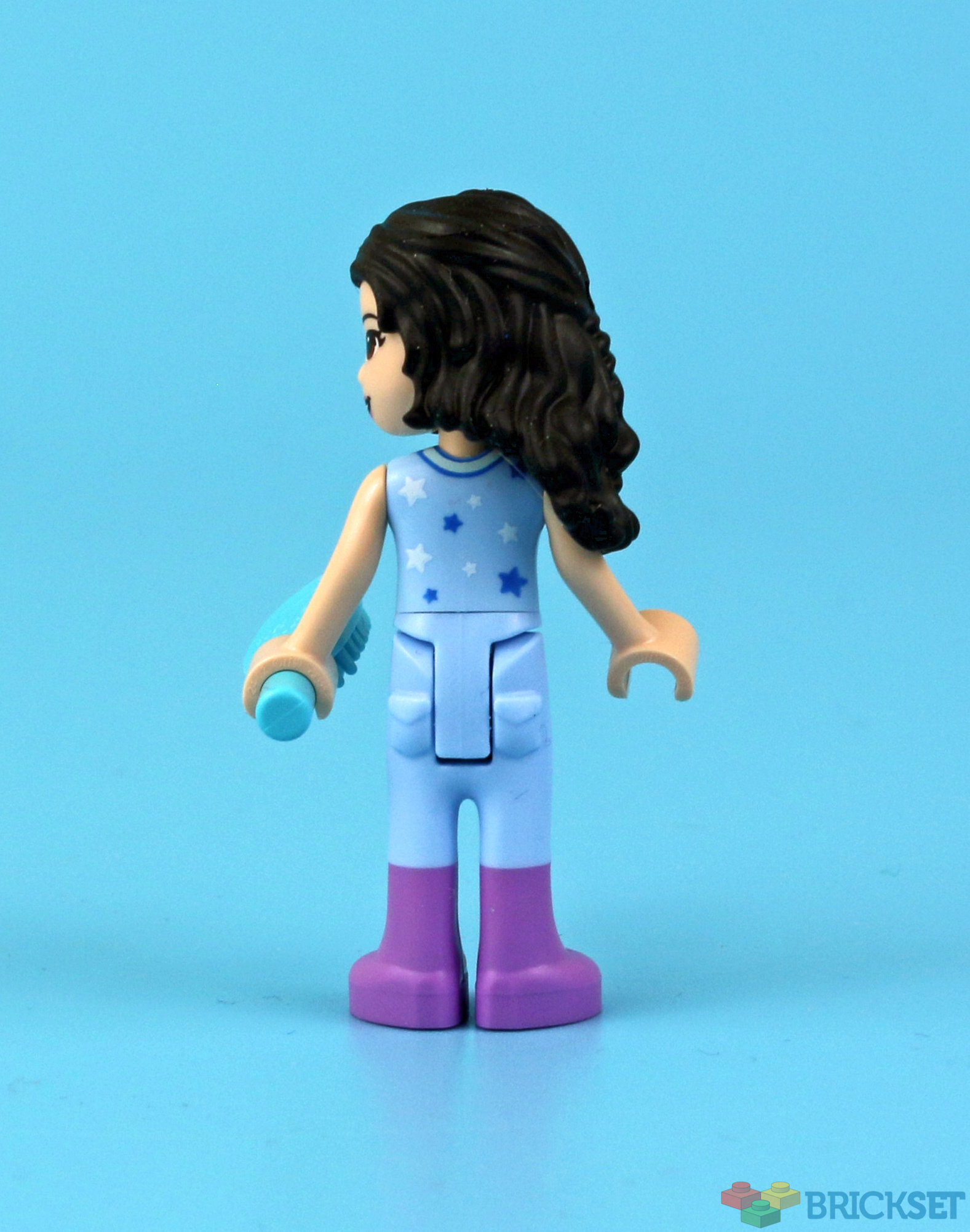 Her torso is nicely detailed and it's new to this calendar. Her pants have been seen only one before and may explain her footwear. These pants were previously seen in 41371 Mia's Horse Trailer, which is not exactly a sleeping activity. So, I'm assuming for this calendar Emma is wearing some long fuzzy slippers that happen to be in her signature colour.