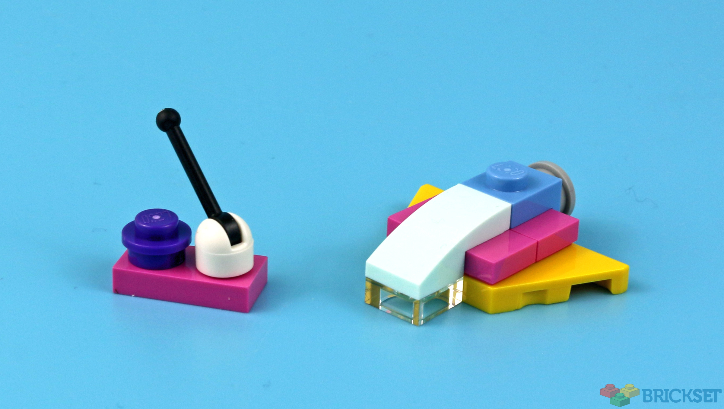 I'm not sure about duck-worthy, but it certainly is colourful. It's a remote controlled airplane - or perhaps it's a drone. Whatever it is, it uses a plethora of colours in the Friends palette. I'm not sure why there's so many different colours, but it works. I thought originally that perhaps the build included each Friends signature colour, but MIa's bright yellowish-green and Stephanie's medium azur are missing.