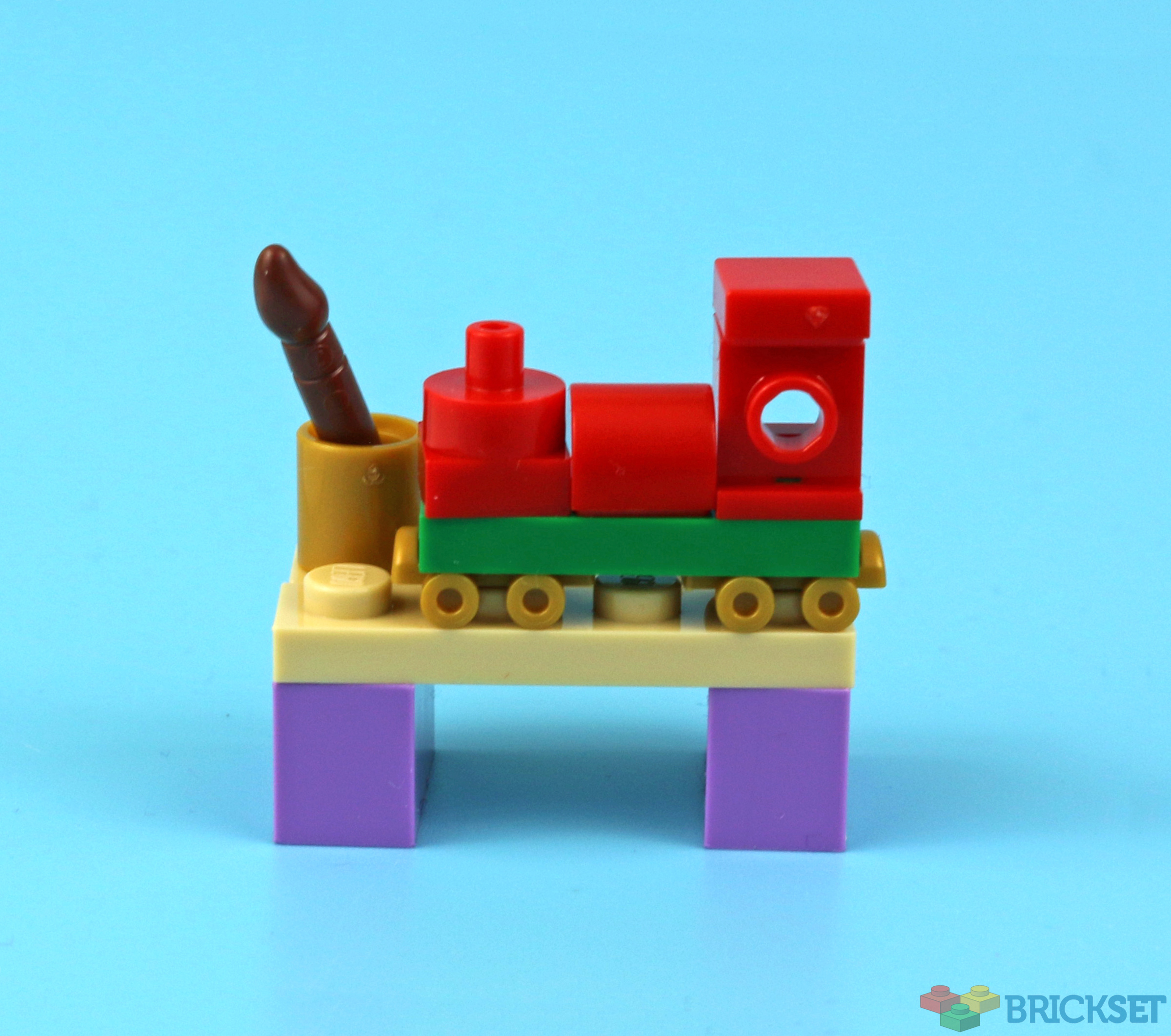 "The instructions on the calendar show this build flipped; I purposely turned the build this way to show off the train better as well as to show the top of the paintbrush."