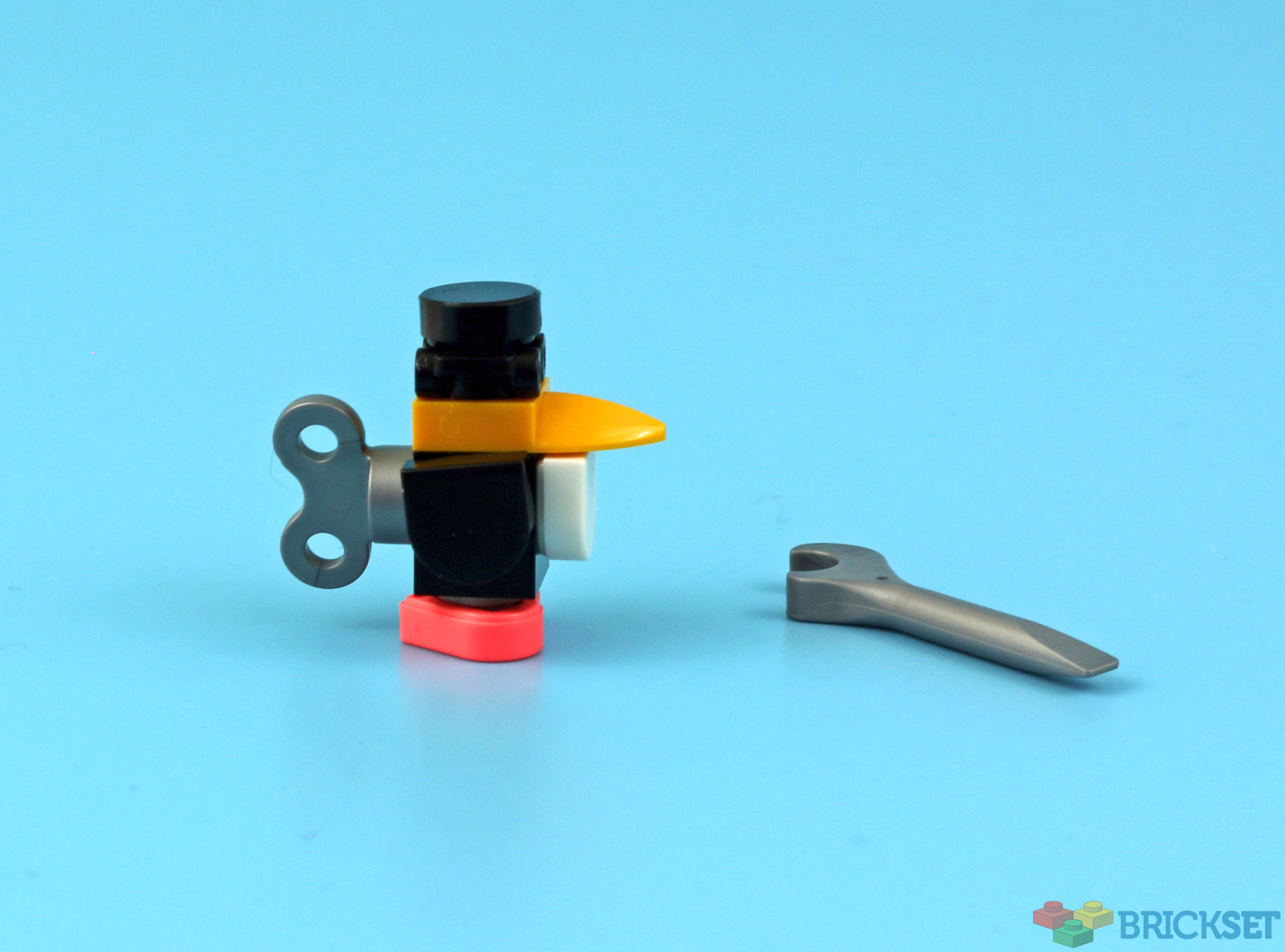 Today's build is a toy penguin and a wrench. This is a deceptively small build - with 6 spares, there are 18 parts today. I think the designer has done a really good job with this, and the use of the heart piece for the penguin's feet is quite novel. It's also very cute.