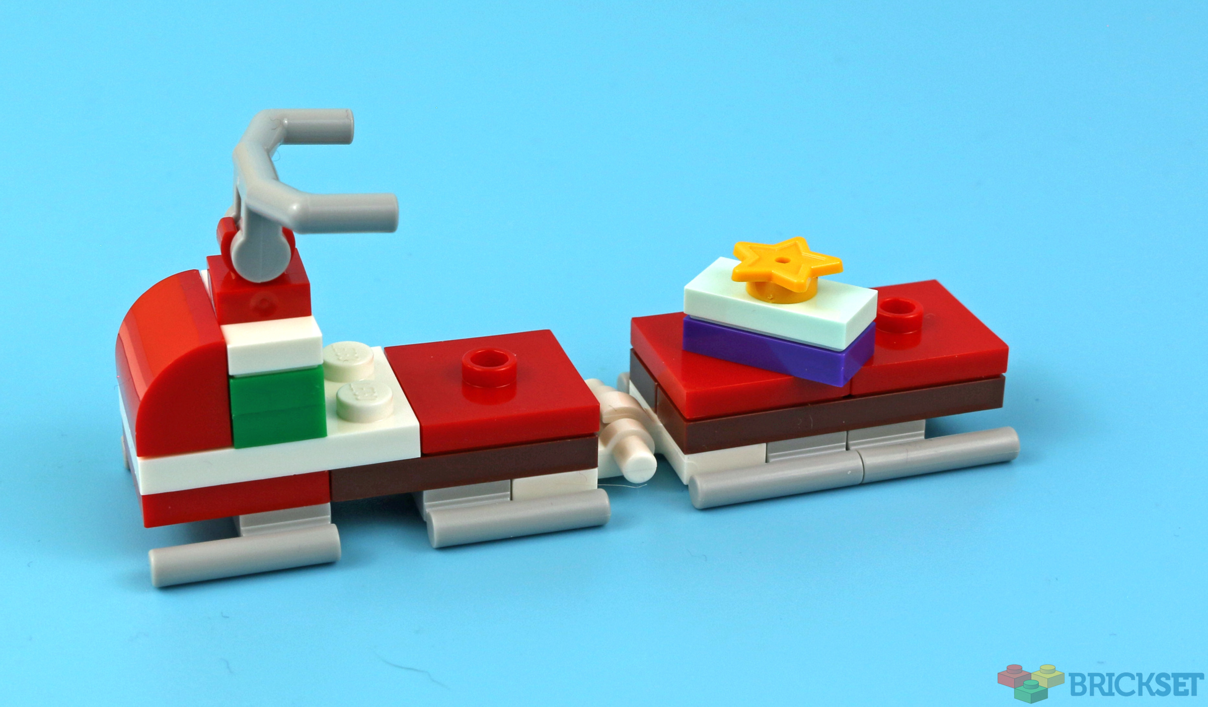 I suppose that didn't take a pyschic to predict that, did it? Today we have a tagalong sled that can be towed by the sled we built yesterday. This comes complete with a present, and a happy coincidence it is that the present brings purple back to the daily builds.