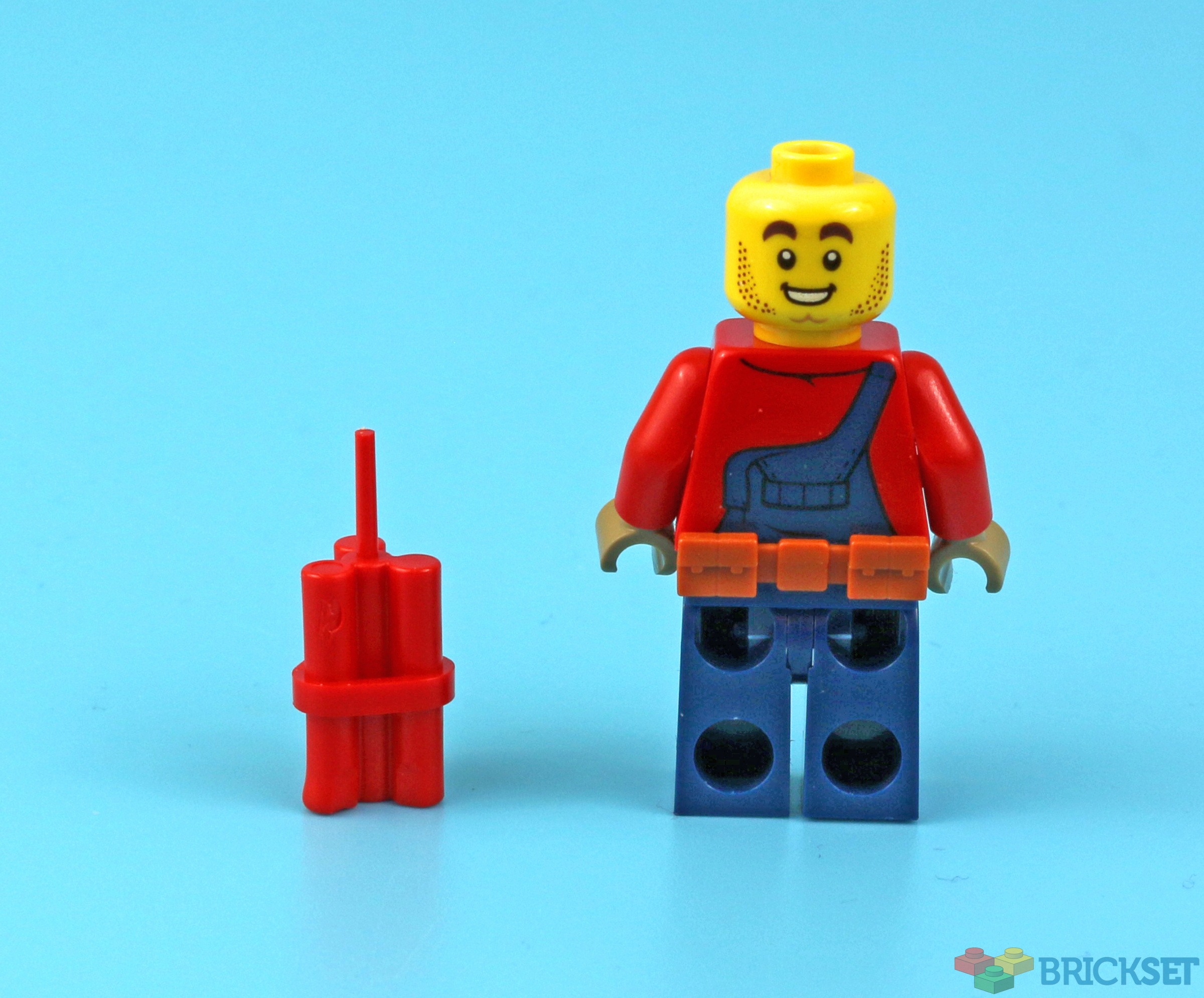 There's a double sided head, I rather like the side that shows his tongue sticking out, as in deep concentration on the task at hand. Though since he comes with dynamite as an accessory, I'm a little worried as to what that task is.