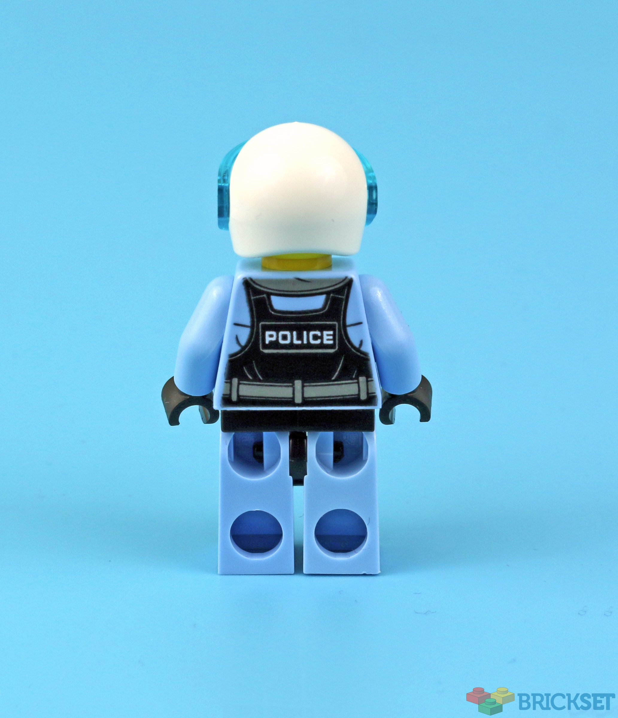 Today brings us Rooky Partnur, one of the police officer in LEGO City Adventures. Rooky is clearly on the job, unlike Duke. She's wearing a blue uniform with a vest that has many pockets and also has her badge attached. Her shirt is open at the neck revealing a grey shirt underneath. I particularly like the detail in the printing of the vest pockets, with the zippers as well as the lines showing that there's likely something in the pockets. I also like the detail on the printing on the legs, showing the straps with silver buckles.