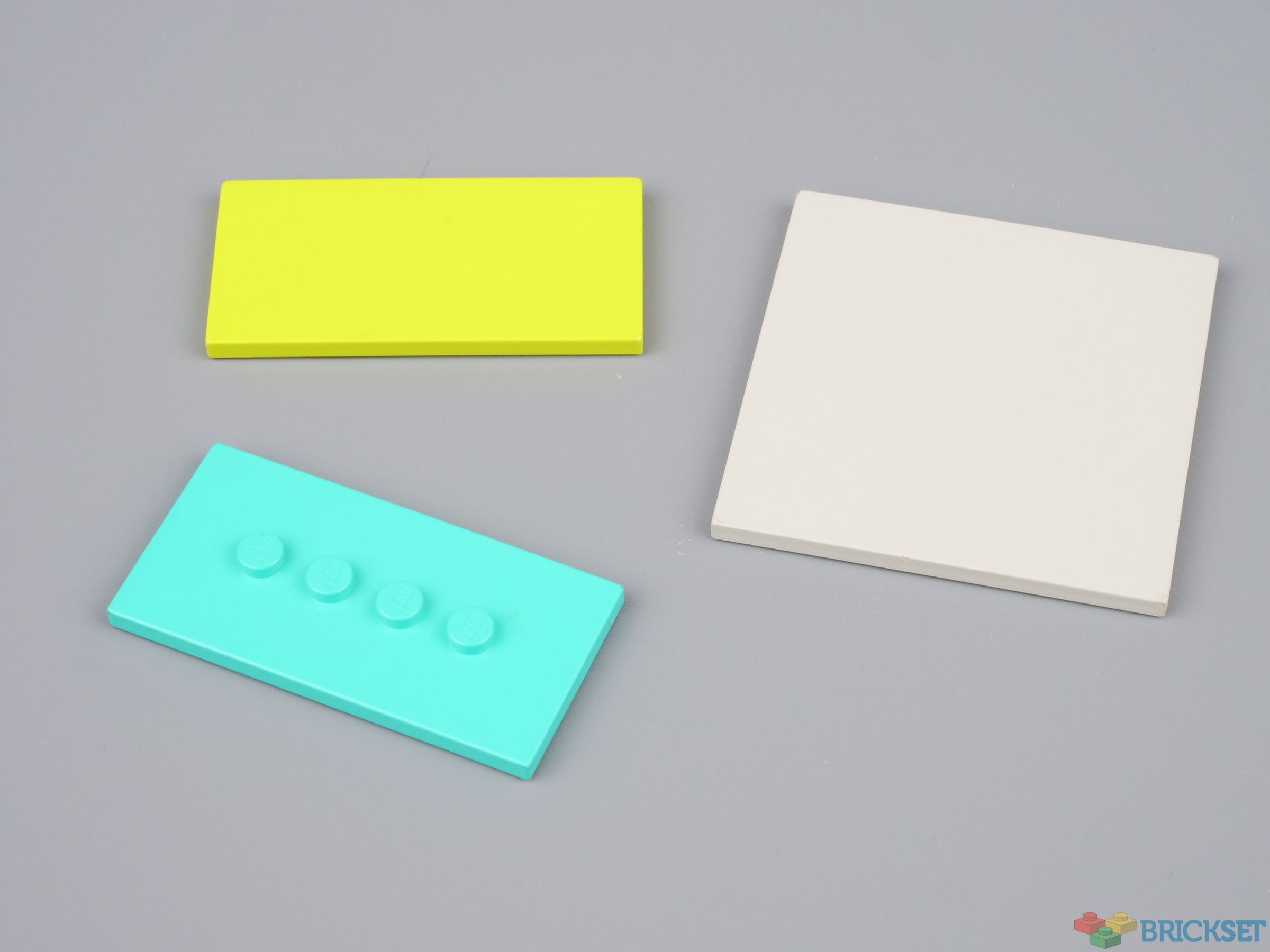 However, they are not tiles as we know them: they do not have anti-studs: just a rim around the edge which is sufficient to keep them in place.